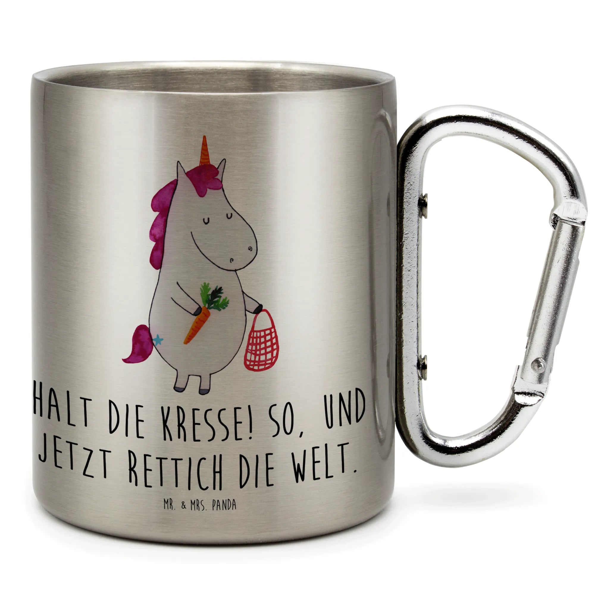 Der Edelstahlbecher Einhorn Gemüse von Mr. & Mrs. Panda ist das perfekte Geschenk für alle, die die zauberhafte Welt der Einhörner lieben und gerne draußen in der Natur unterwegs sind. Mit einer Füllmenge von 330 ml und einem Gewicht von nur 145 g ist dieser Becher besonders leicht und handlich und eignet sich ideal für Ausflüge in die Natur, sei es beim Campen oder Wandern. Der integrierte Karabinerhaken ermöglicht dir, den Becher ganz bequem an deinem Rucksack oder deiner Gürtelschlaufe zu befestigen. So hast du ihn immer griffbereit, egal wo dich dein Abenteuer hinführt!