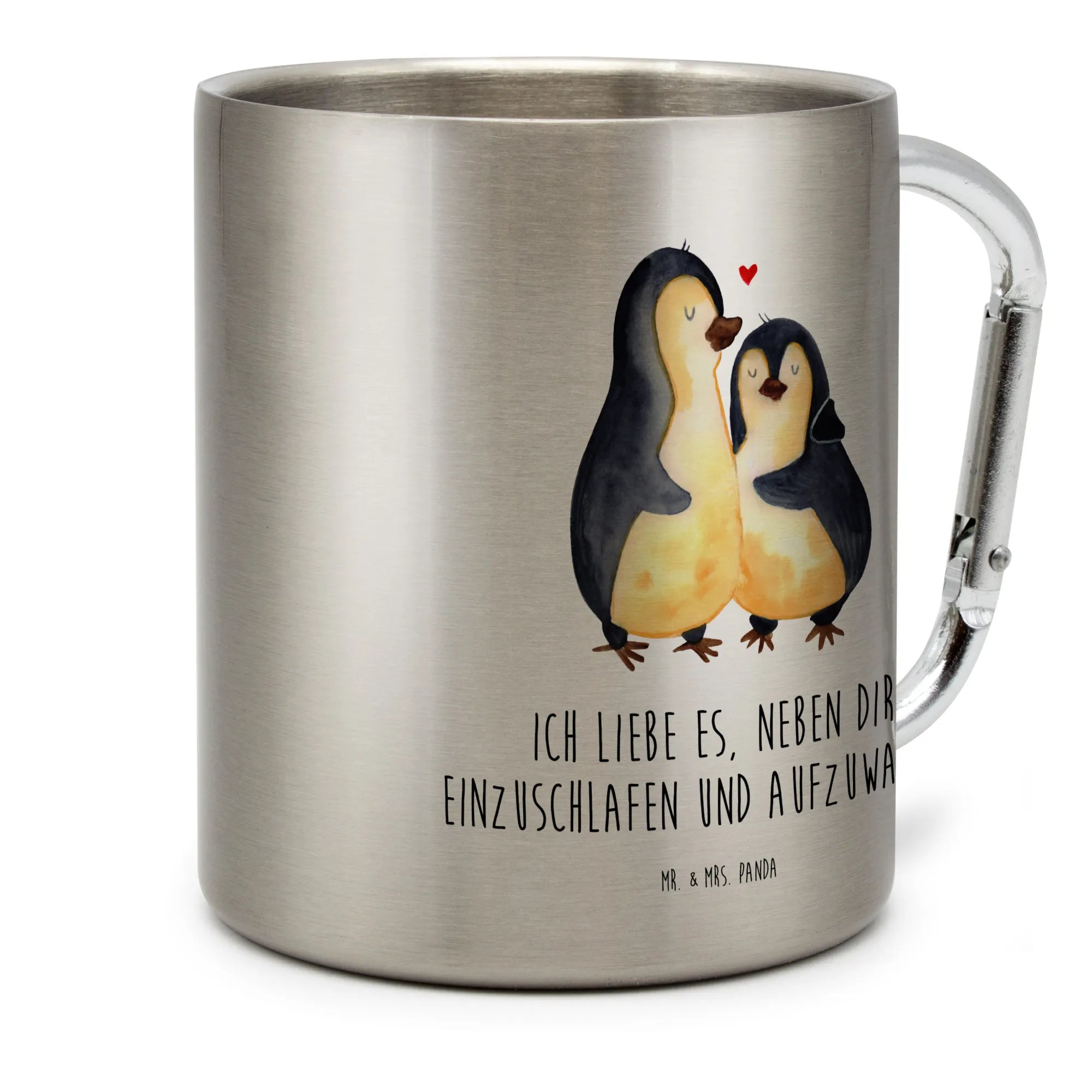 Entdecke die wunderschöne Edelstahltasse "Pinguine Einschlafen" aus der Kollektion Liebe von Mr. & Mrs. Panda! Diese Tasse ist nicht nur ein praktisches Utensil für all deine Abenteuer – sei es beim Camping, auf Wanderungen oder einfach zuhause – sondern auch ein ganz besonderes Liebesgeschenk für deine*n Partner*in.