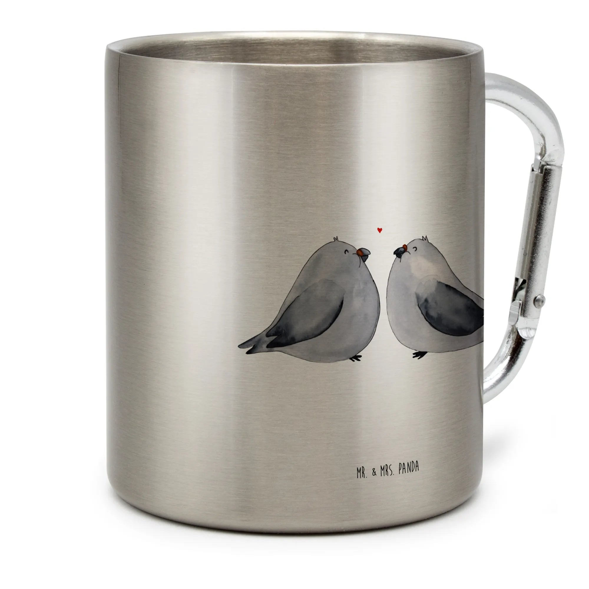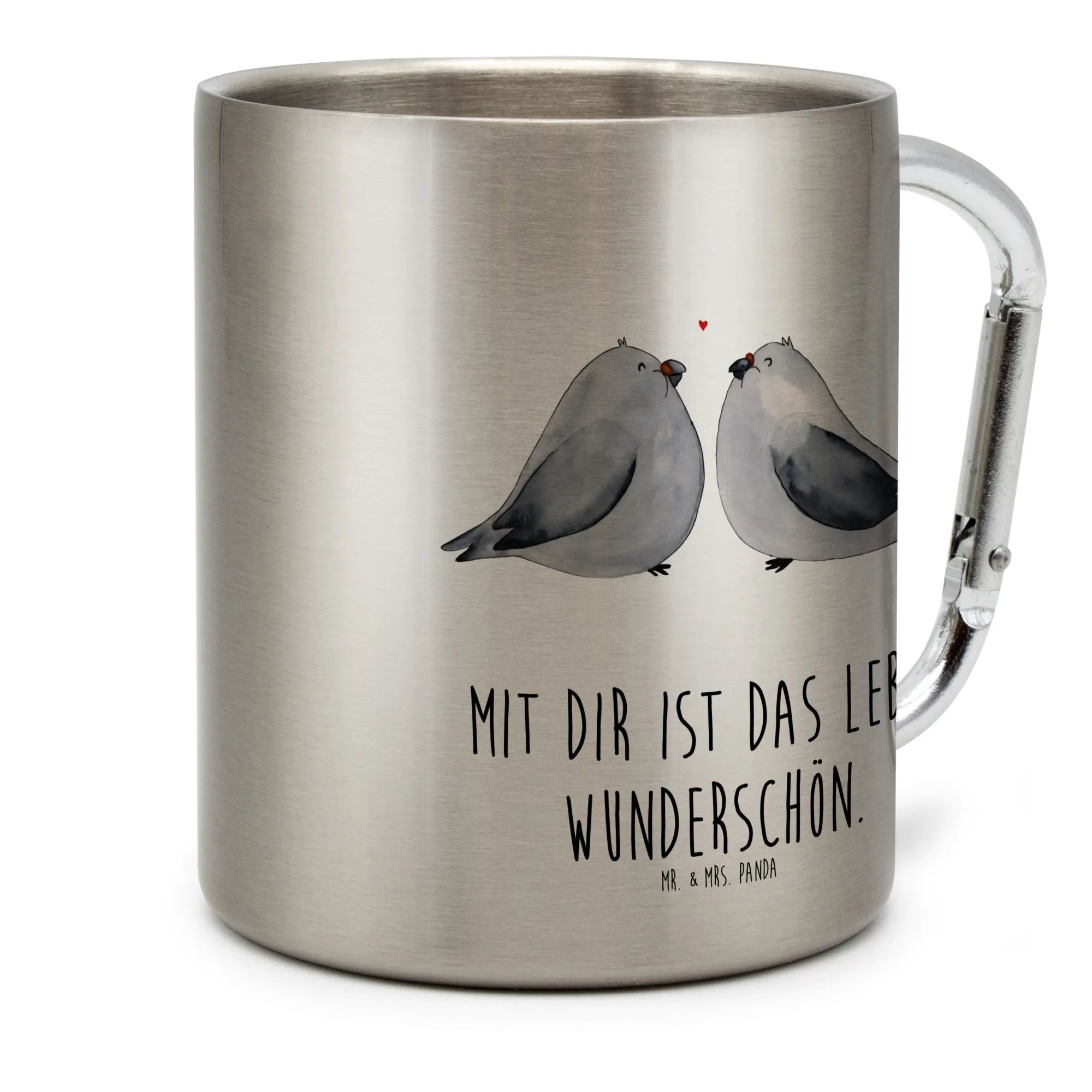 Der liebe Edelstahlbecher mit dem Motive Turteltauben Liebe von Mr. & Mrs. Panda ist das perfekte Geschenk für alle Verliebten, die ihre Zuneigung auf besondere Art zeigen möchten. Ob zum Jahrestag, Hochzeitstag oder einfach nur so – mit diesem besonderen Becher bringst du das Herz deines Partners zum Schmelzen!