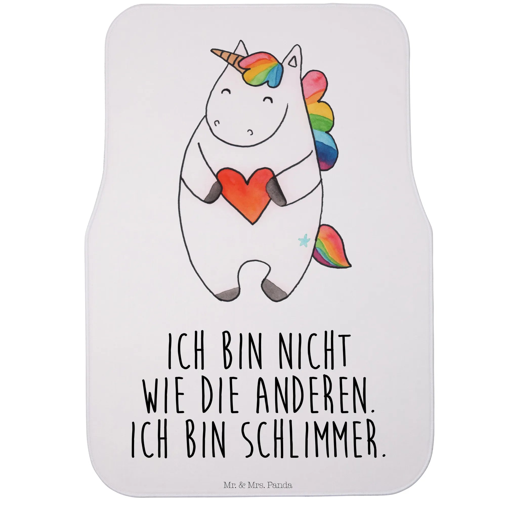 Die Fahrer Autofußmatte Einhorn Herz aus der Einhorn-Kollektion ist das perfekte Geschenk für alle Einhorn-Fans und Fahrzeugs begeisterte. Mit ihrem charmanten, handgezeichneten Motiv eines fröhlichen Einhorns, das ein Herz in der Hand hält, bringt sie nicht nur Farbe und Freude in dein Auto, sondern schützt auch den Fußraum vor Schmutz und Nässe.