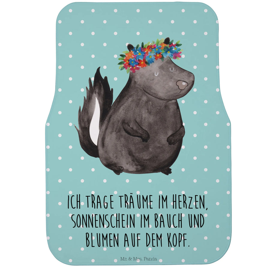 Entdecke die wundervolle Fahrer Autofußmatte 'Stinktier Blumenmädchen' aus der exklusiven Stinktier-Kollektion von Mr. & Mrs. Panda!