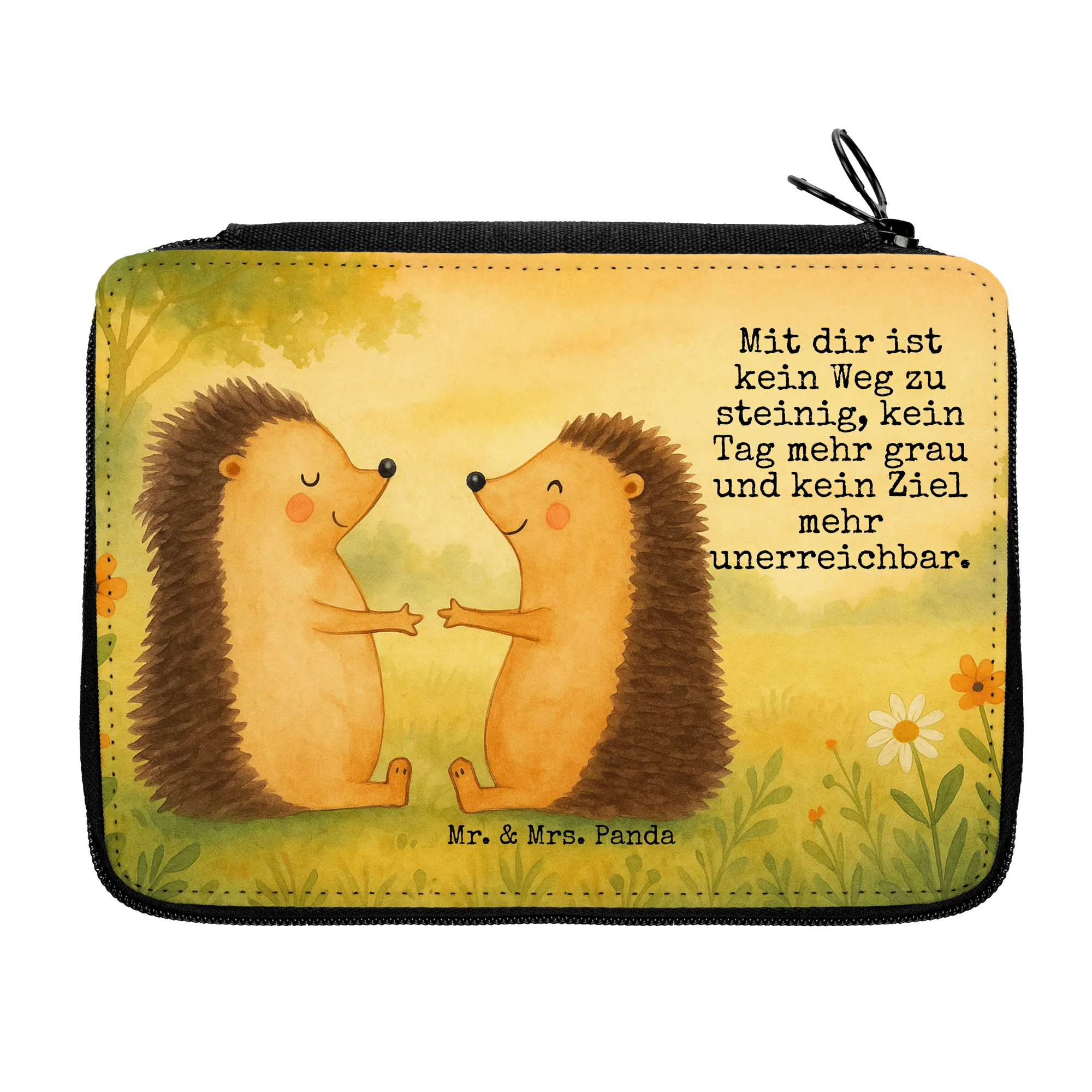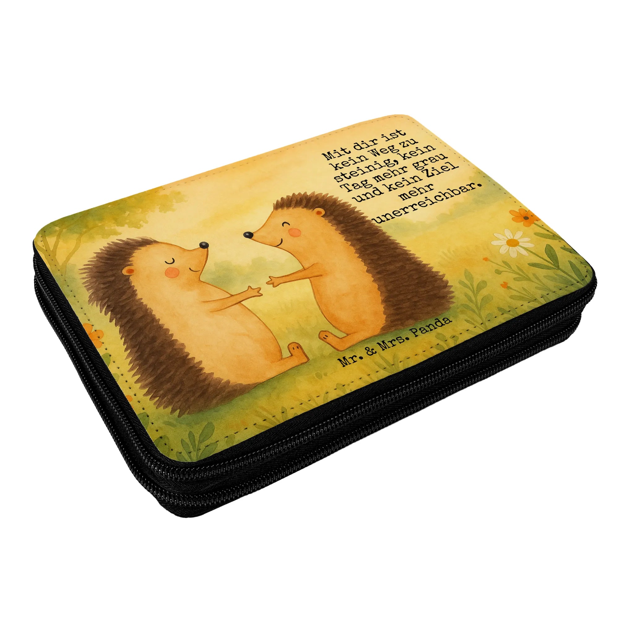 Unsere Federmappe „Igel Liebe“ aus der Mr. & Mrs. Panda Liebe-Kollektion ist mehr als ein gewöhnliches Mäppchen. Das bezaubernde Motiv zeigt zwei verliebte Igelchen, die sich mit rosigen Bäckchen gegenüberstehen und Wärme sowie Verbundenheit ausdrücken. Der liebevolle Spruch „Mit dir ist kein Weg zu steinig, kein Tag mehr grau und kein Ziel mehr unerreichbar.“ macht dieses Stifteetui zum täglichen Liebesbeweis.