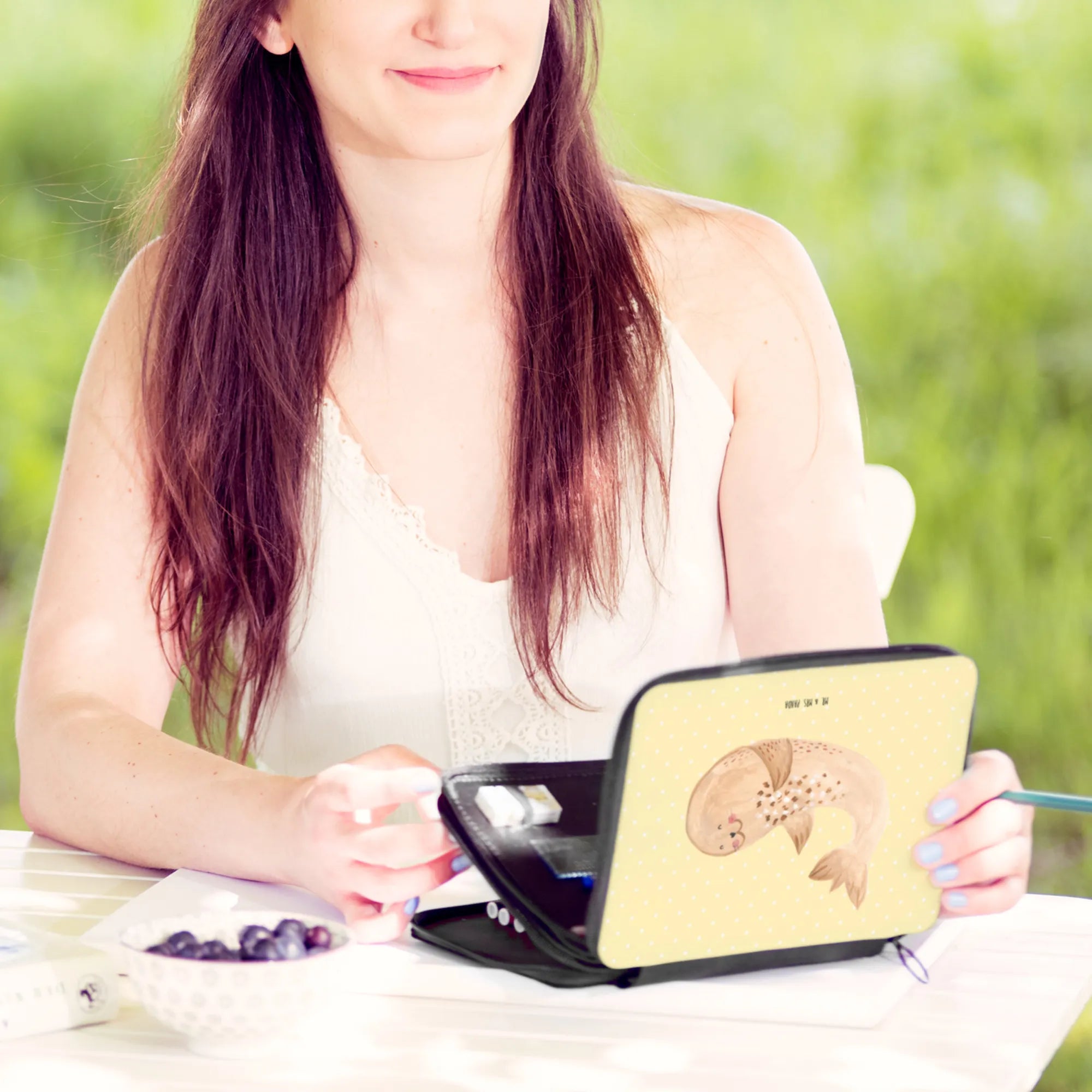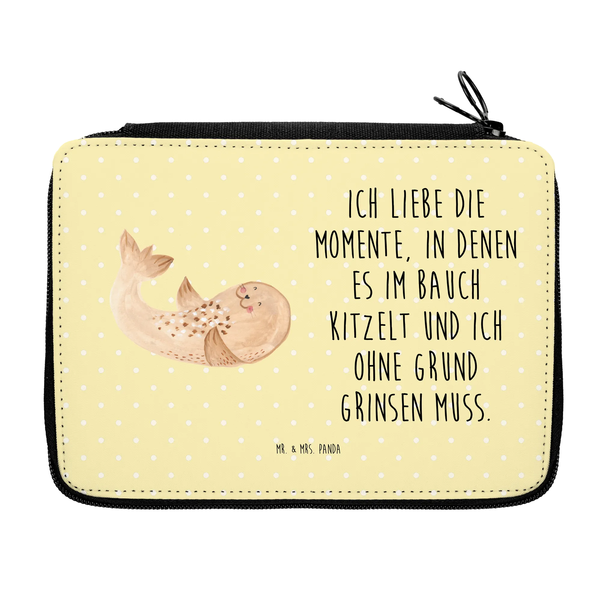Die wunderschöne Federmappe "Robbe liegend" von Mr. & Mrs. Panda ist das perfekte Accessoire für alle Schulkinder, die fröhliche und kreative Momente lieben! Sie ist ein wahrer Hingucker und ein Muss in jedem Schulranzen. Mit ihrem liebevoll gestalteten Motiv einer gemütlichen Robbe, die zum Entspannen und Lachen einlädt, sorgt diese Federmappe für gute Laune und Begeisterung.