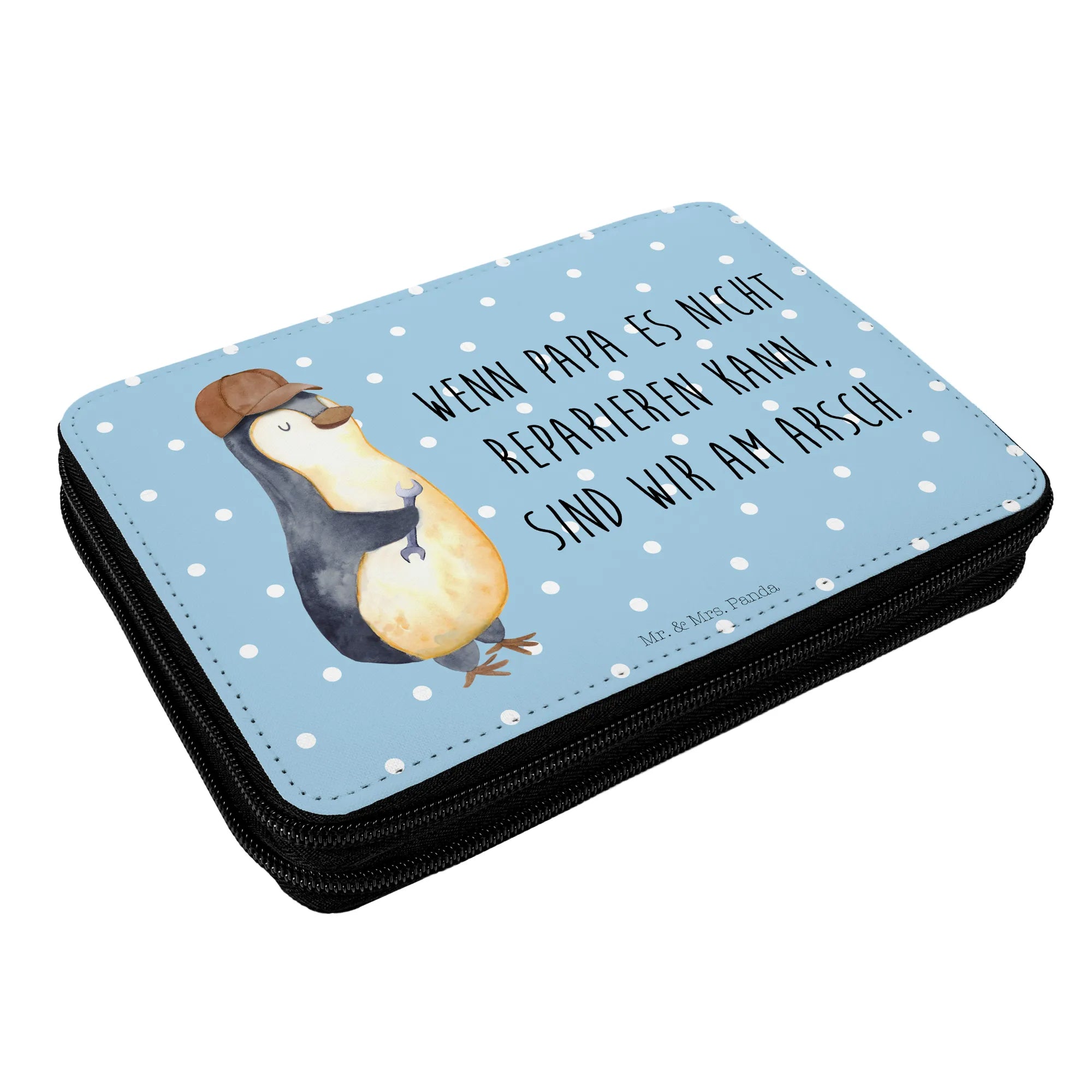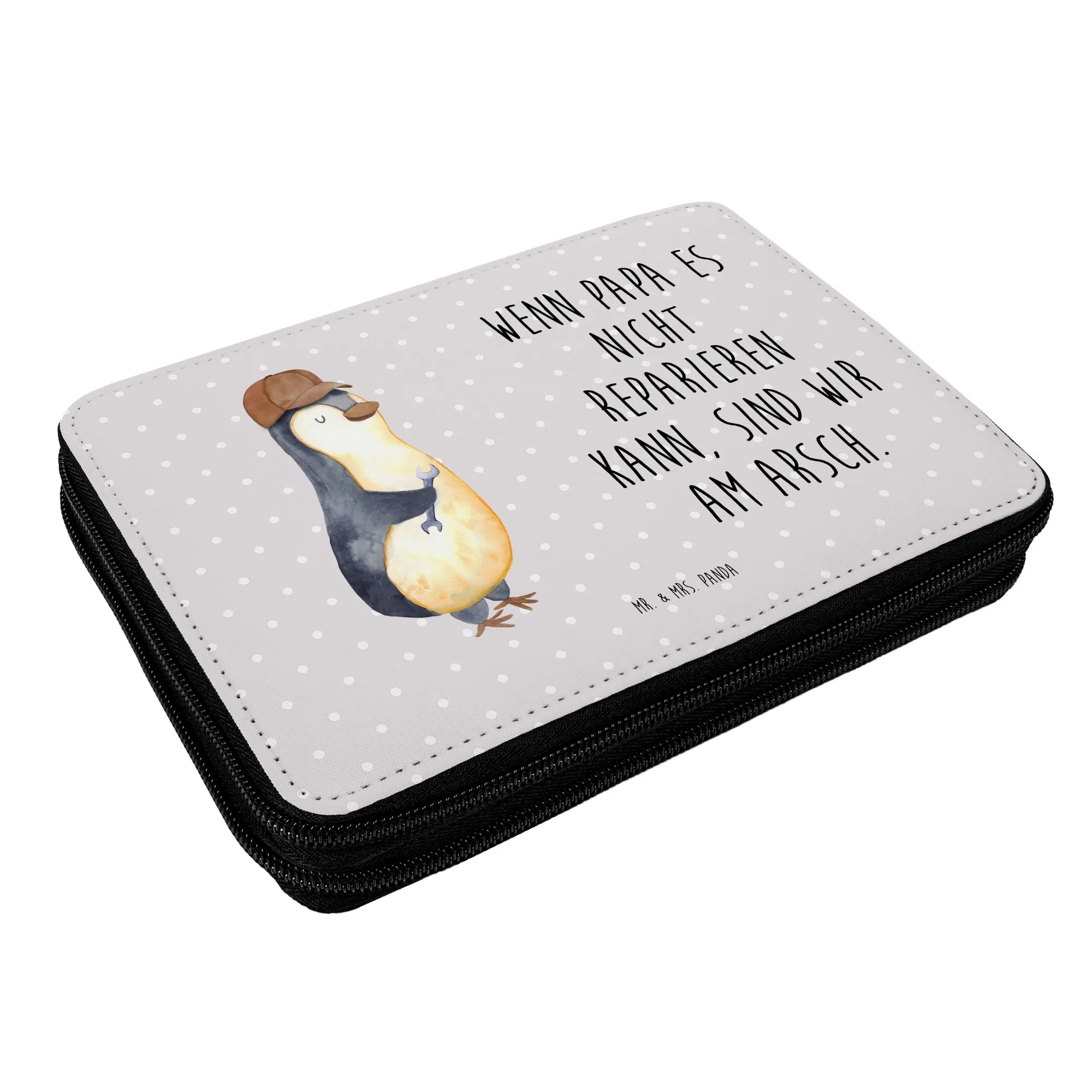 Die wunderschöne Federmappe "Wenn Papa es nicht reparieren kann, sind wir am Arsch" von Mr. & Mrs. Panda ist das perfekte Geschenk für Schulanfänger, Schüler und Studenten. Mit einem sympathisch lächelnden Pinguin, der einen Schraubenschlüssel in seiner Flügelhand hält, bringt sie gleich beim ersten Blick ein Lächeln ins Gesicht.