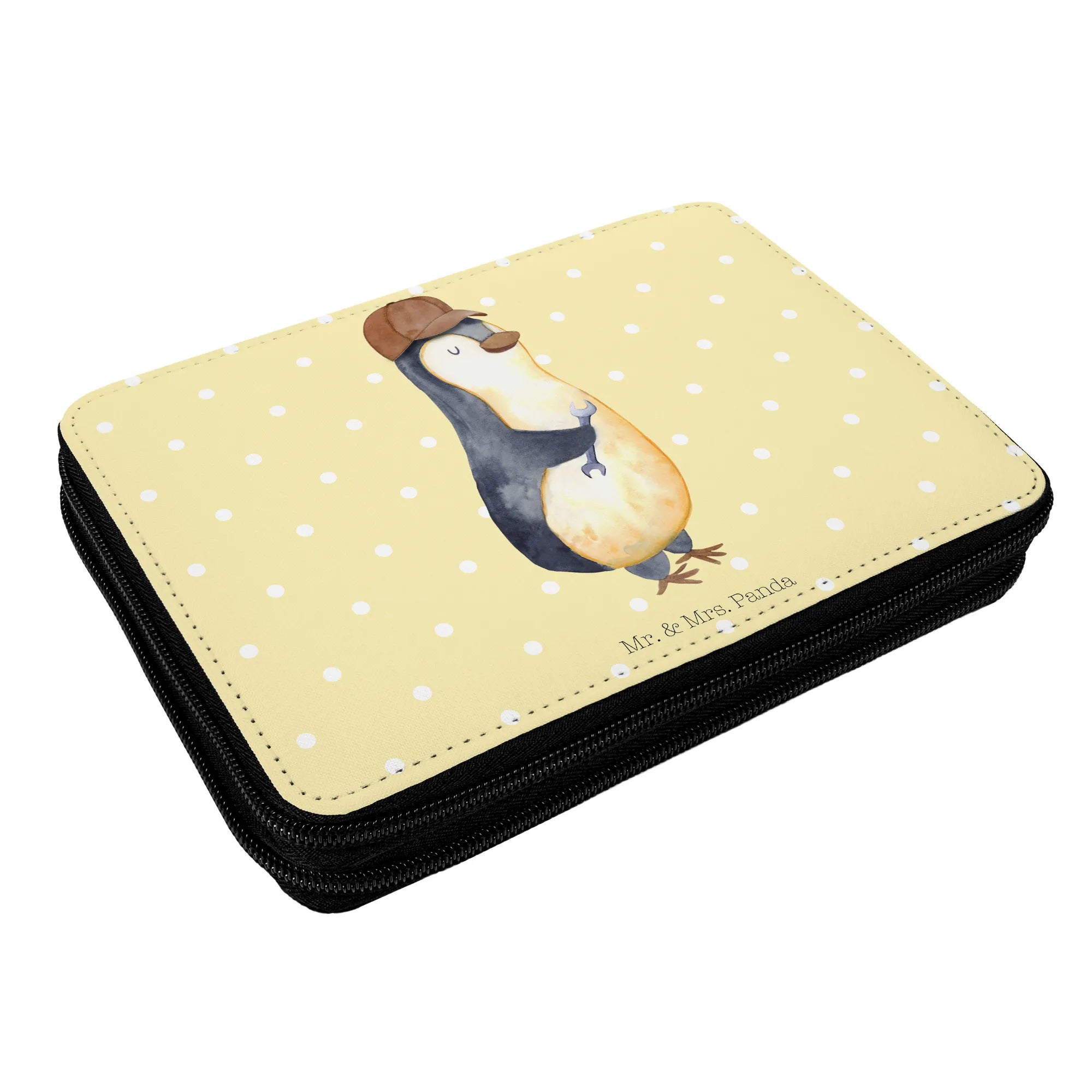 Die wunderschöne Federmappe "Wenn Papa es nicht reparieren kann, sind wir am Arsch" von Mr. & Mrs. Panda ist das perfekte Geschenk für jeden kleinen Schulanfänger und kreative Köpfe! Diese lustige und farbenfrohe Stiftetasche bringt nicht nur Freude, sondern ist auch äußerst praktisch. Mit einem sympathisch wirkenden Pinguin, der eine braune Kappe trägt und mit einem Schraubenschlüssel in der Flügelflosse wedelt, wird sie schnell zum Hingucker in jedem Schulranzen.