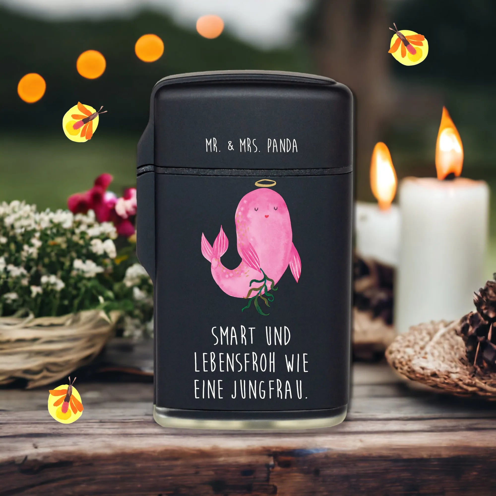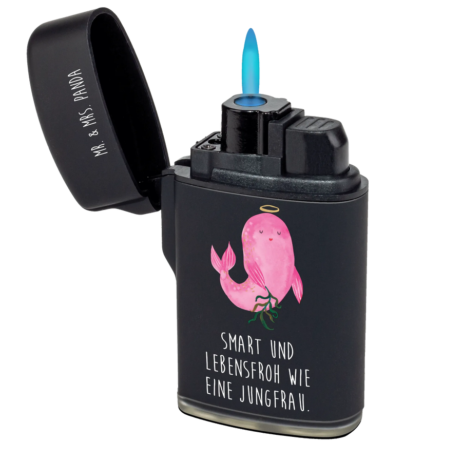 Das Feuerzeug Sternzeichen Jungfrau von Mr. & Mrs. Panda ist das perfekte Geschenk für alle, die im August oder September Geburtstag haben. Es ist ein stilvolles, nachfüllbares Gasfeuerzeug, das nicht nur funktional ist, sondern auch durch sein einzigartiges Design besticht.