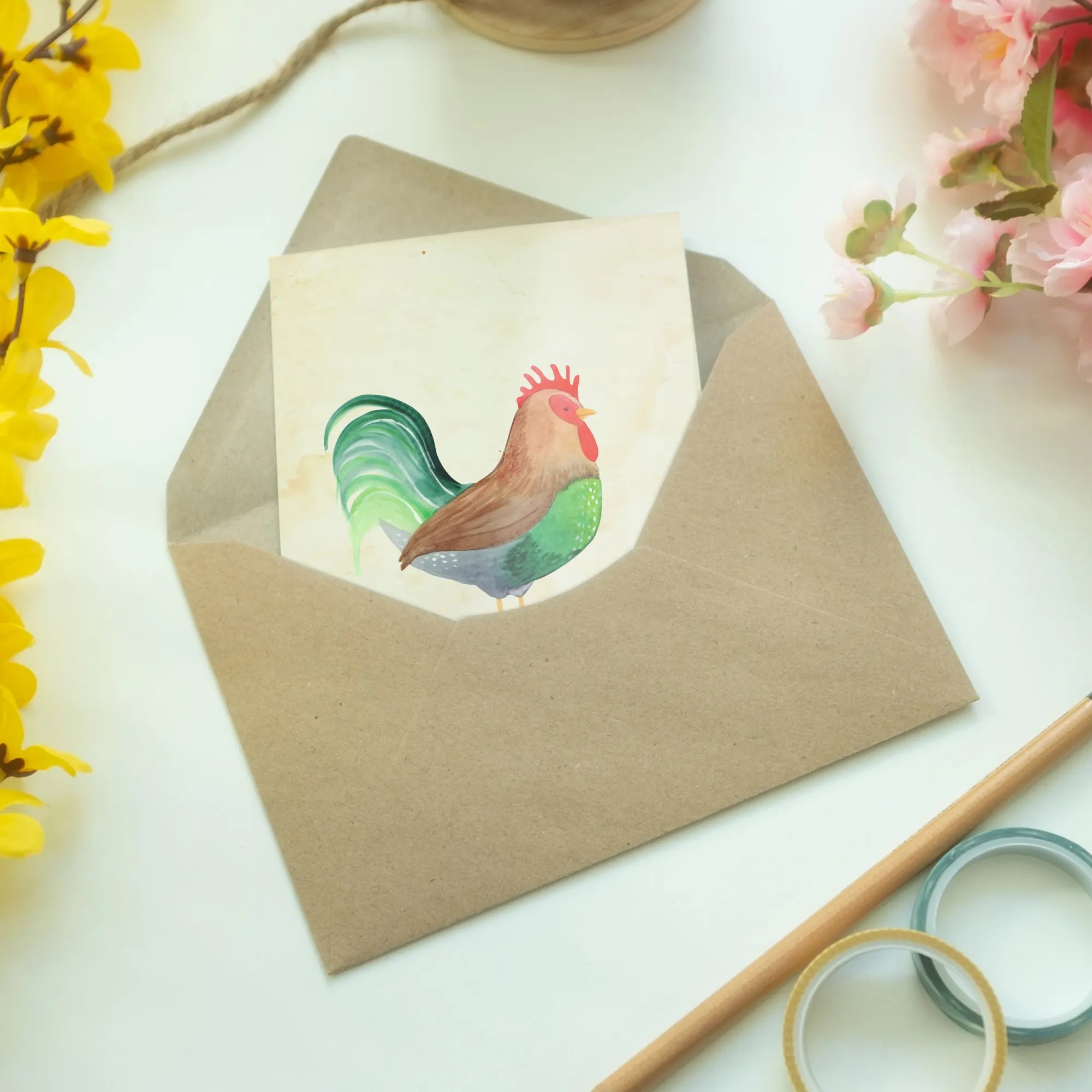 Stolzer Hahn mit Korn – Mr. & Mrs. Panda Hühner-Motiv für Accessoires & Deko