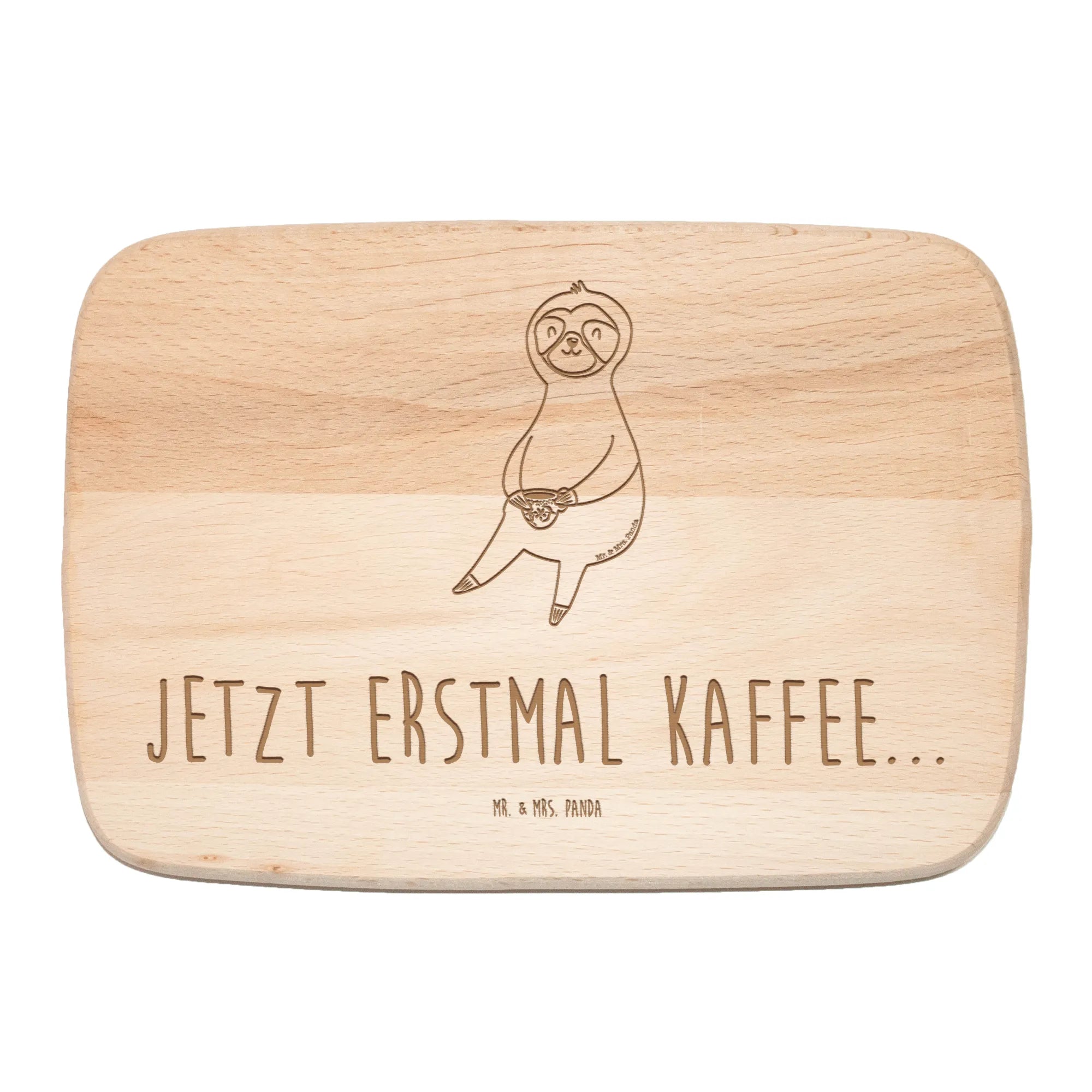 Das Frühstücksbrett Faultier Kaffee von Mr. & Mrs. Panda ist der perfekte Begleiter für alle, die ihren Morgen mit einem Lächeln beginnen möchten. Hergestellt aus robustem und hochwertigem FSC-zertifiziertem Buchenholz, bietet dieses einzigartige und edle Frühstücksbrett nicht nur eine praktische Oberfläche zum Schneiden und Servieren, sondern auch ein liebevoll handgezeichnetes Motiv.