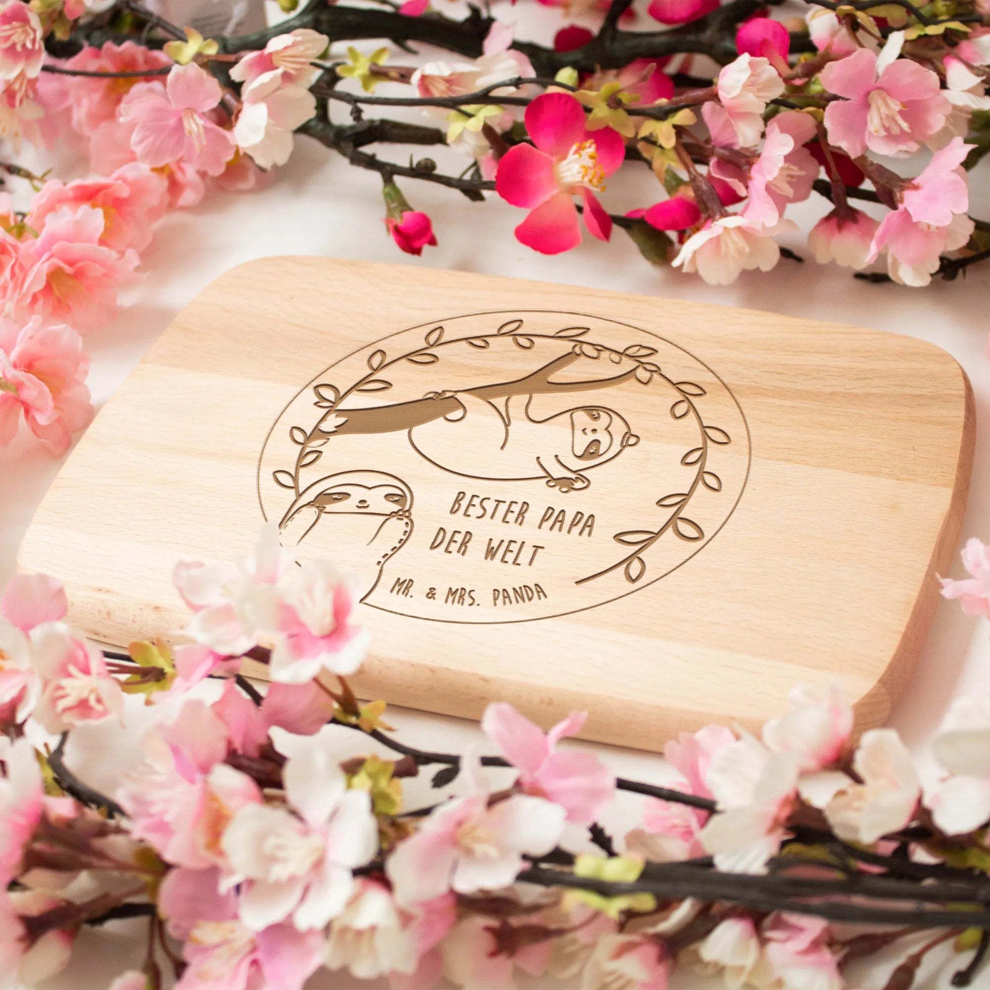 Wenn Du nach einem besonderen Geschenk für einen tollen Papa suchst, ist das Frühstücksbrett mit dem süßen Faultier Papa aus der Familien Kollektion von Mr. & Mrs. Panda genau das Richtige!