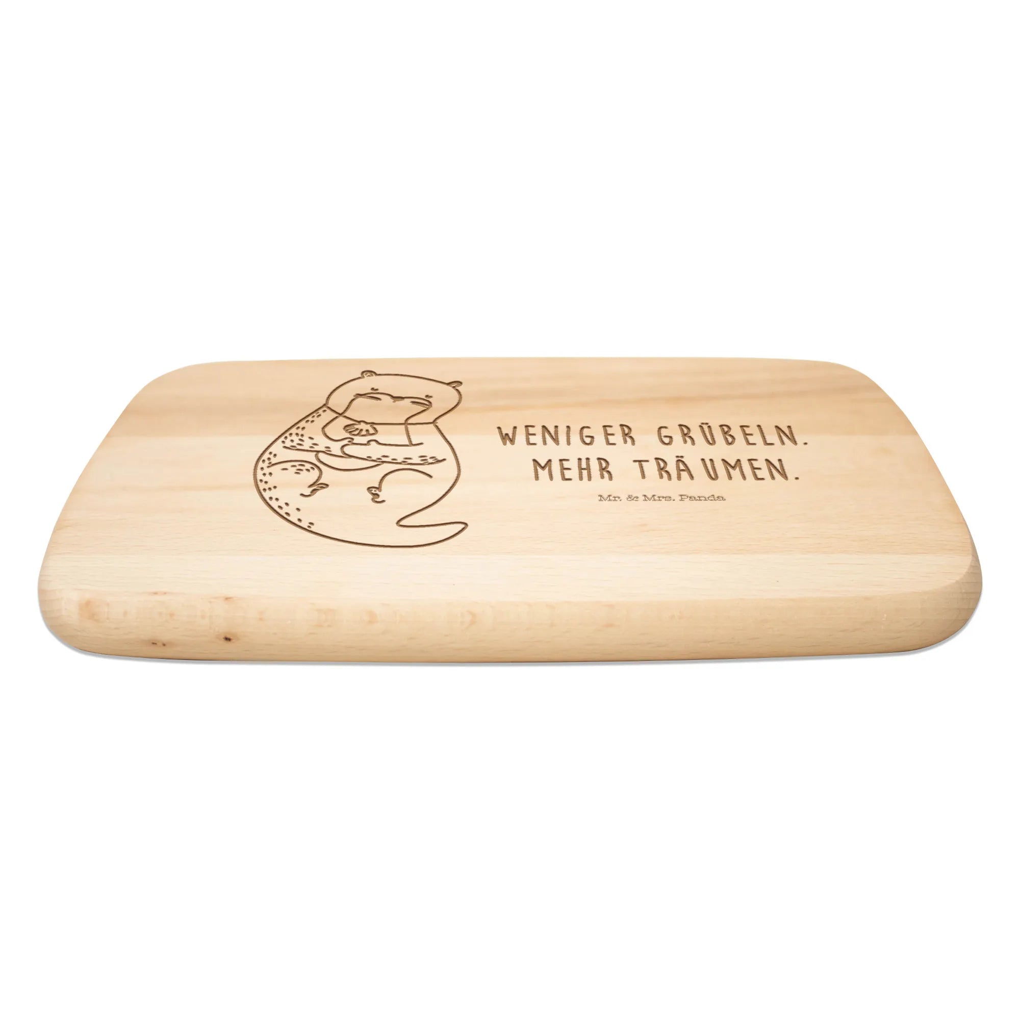 Das Frühstücksbrett Otter mit Muschelmedaillon von Mr. & Mrs. Panda ist ein wahres Highlight für alle Otterliebhaber und Naturliebhaber! Dieses einzigartige und edle Frühstücksbrett bringt nicht nur einen Hauch von Natur in deine Küche, sondern strahlt auch Charm und Leichtigkeit aus. Der süße Otter mit seiner Muschelmedaillon-Kette lädt dazu ein, den Alltag für einen Moment zu vergessen und einfach zu träumen. Mit dem einprägsamen Slogan 'Weniger grübeln, mehr träumen.' auf der Vorderseite inspiriert es jeden, den Tag mit positiver Energie zu beginnen.