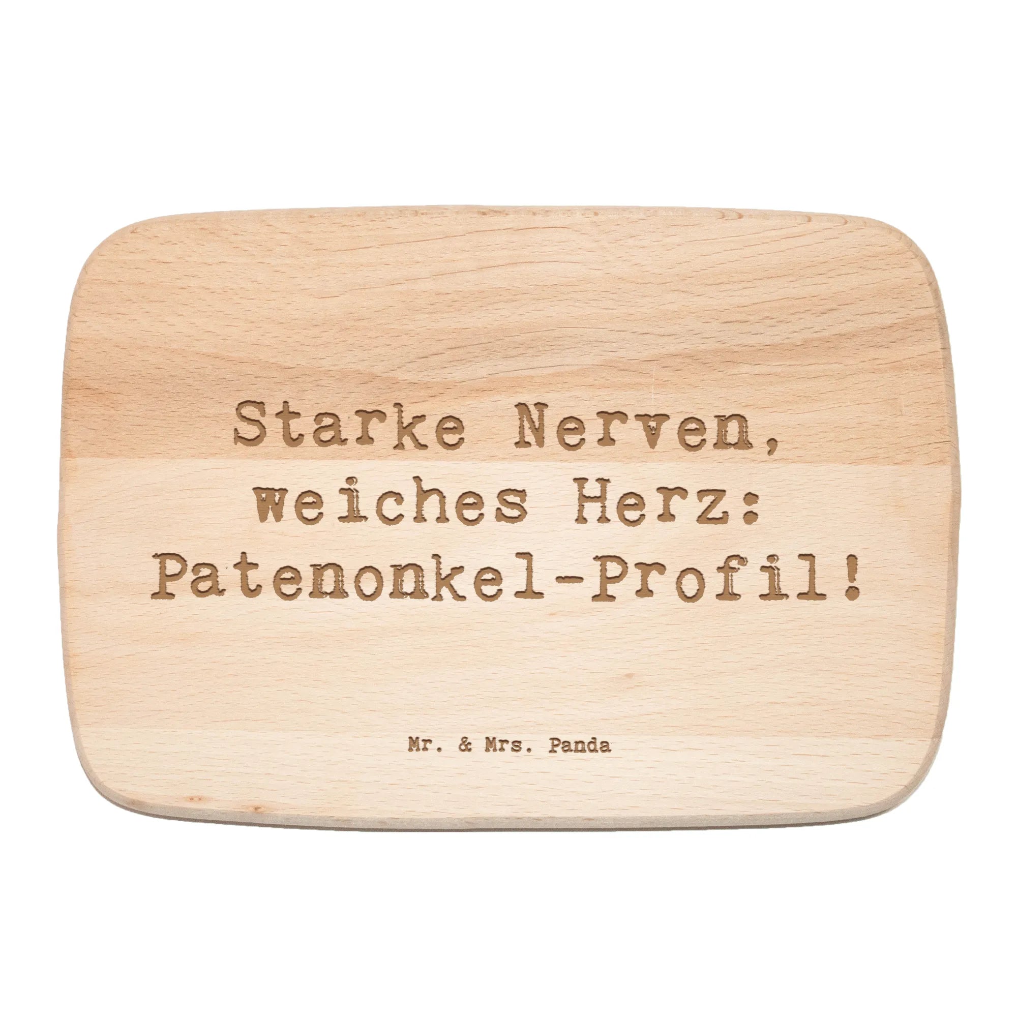 Die besondere Lasergravur, die den Spruch "Starke Nerven, weiches Herz: Patenonkel-Profil!" ziert, macht dieses Küchenbrett zu einem ganz besonderen Geschenk. Es trägt die Bedeutung und die Verantwortung, die ein Patenonkel in der Kinderzeit hat, ins Gegenüber. Die Verbindung zwischen Patenonkel und Patenkind wird durch dieses Geschenk in liebevoller Weise gefeiert. Wenn du also auf der Suche nach einem Dankeschön für einen besonderen Patenonkel bist oder einfach nur die Beziehung zu einem lieben Menschen würdigen möchtest, ist dieses Frühstücksbrett genau das Richtige für dich.