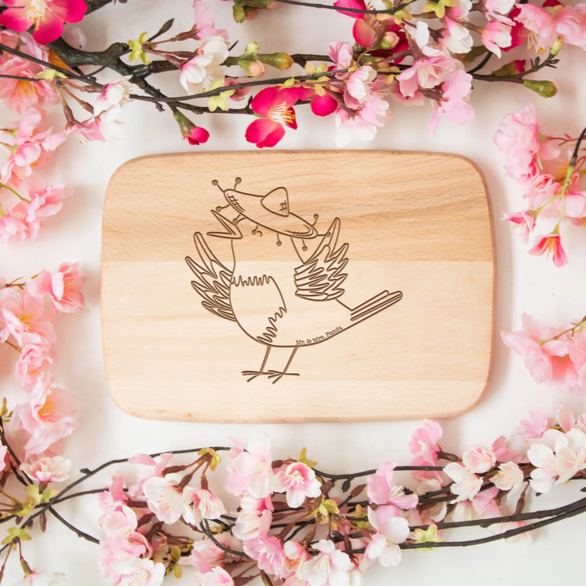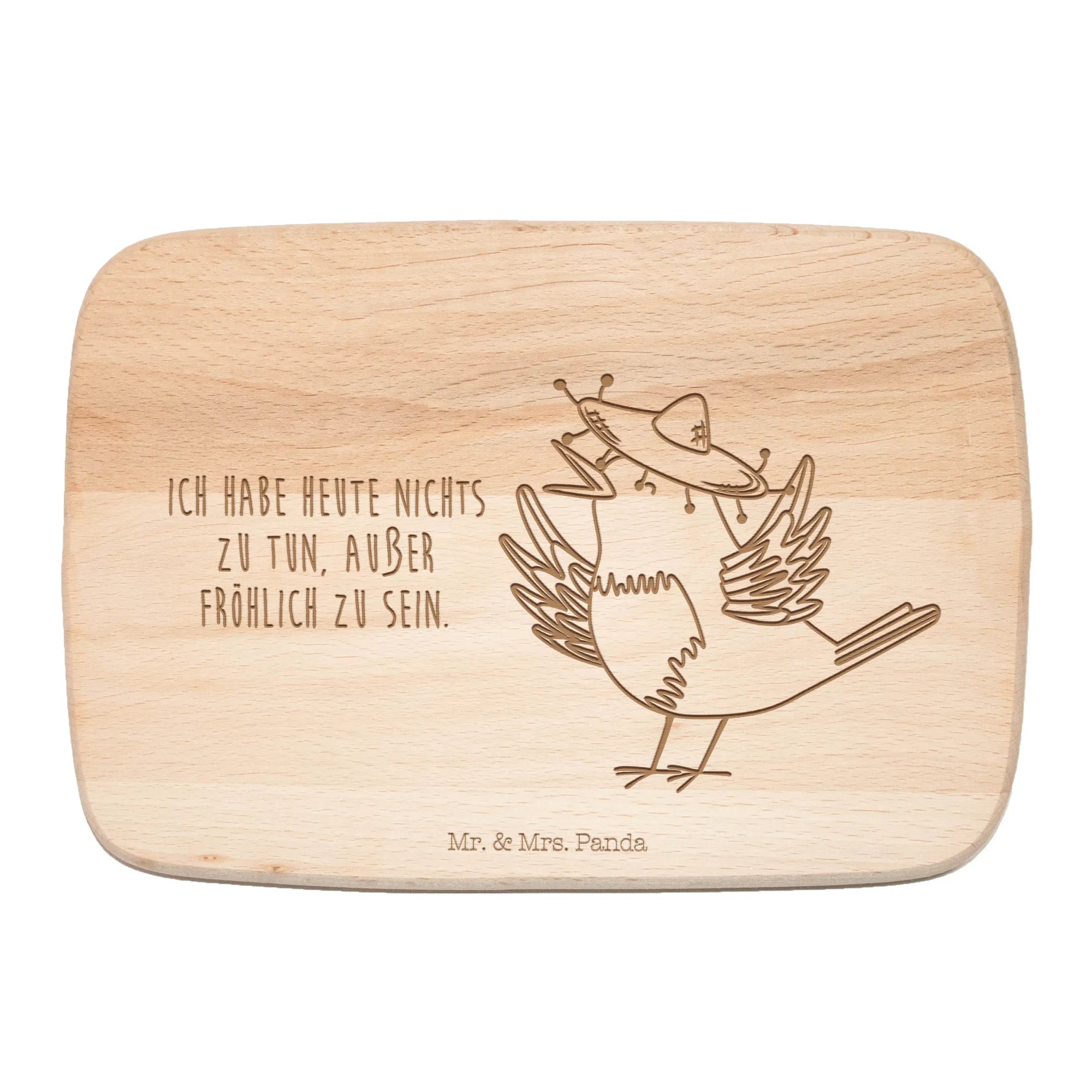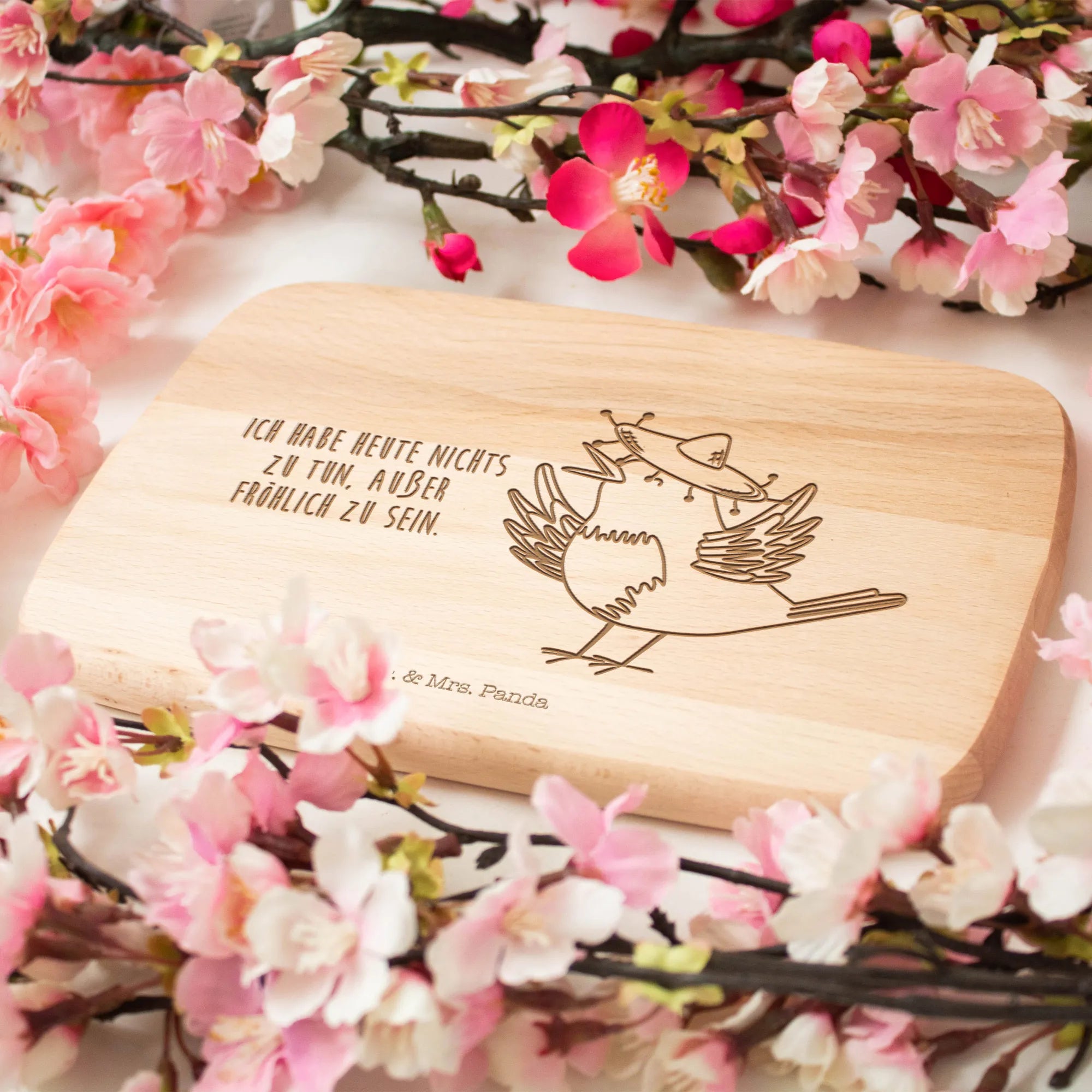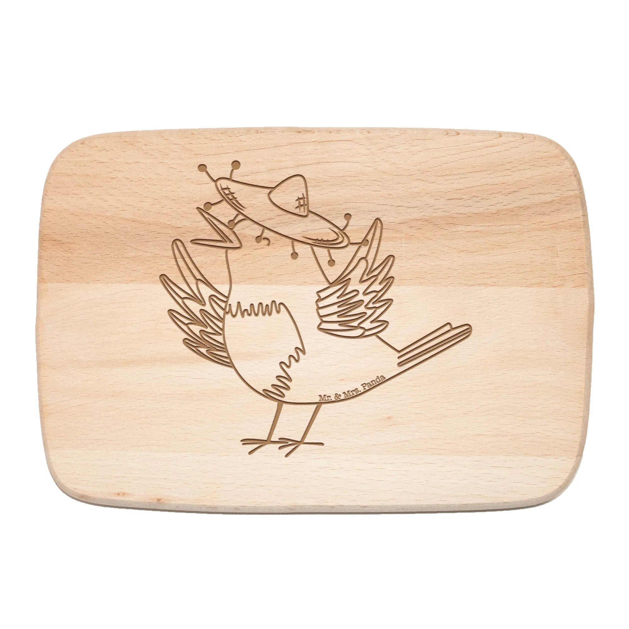 Das Frühstücksbrett "Rabe mit Sombrero" von Mr. & Mrs. Panda ist das perfekte Geschenk für alle, die fröhliche und positive Vibes in ihrer Küche lieben! Dieses einzigartige und edle Frühstücksbrettchen aus robustem FSC-zertifizierten Buchenholz überzeugt nicht nur durch seine Qualität, sondern auch durch sein lebhaftes Design.