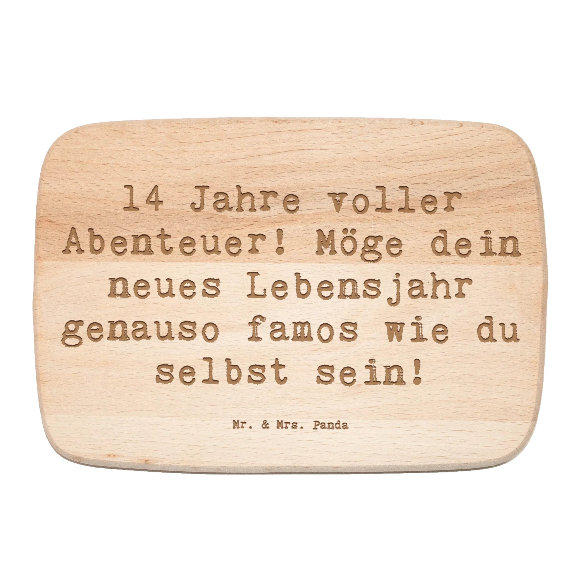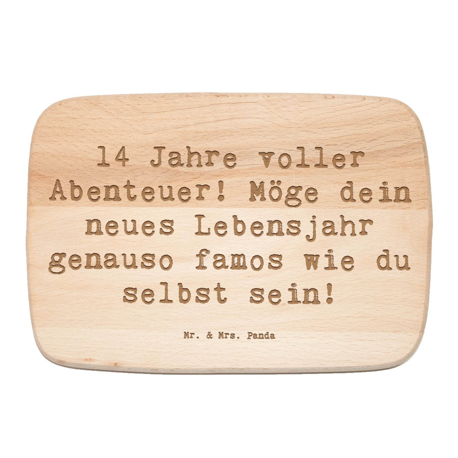 Das Frühstücksbrett von Mr. & Mrs. Panda ist das perfekte Geschenk für den 14. Geburtstag! Es ist nicht nur ein ganz besonderes Küchenaccessoire, sondern auch eine liebevolle Erinnerung an einen wichtigen Lebensabschnitt. Mit dem liebevoll gestalteten Spruch '14 Jahre voller Abenteuer! Möge dein neues Lebensjahr genauso famos wie du selbst sein!' bringt es ein Lächeln auf jedes Gesicht.