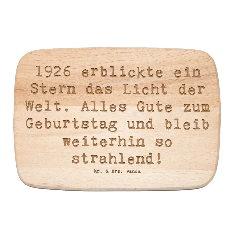 Das Frühstücksbrett von Mr. & Mrs. Panda ist nicht nur ein Küchenutensil, sondern ein ganz besonderes Geschenk für alle, die im Jahr 1926 geboren wurden. Mit dem liebevoll gravierten Spruch '1926 erblickte ein Stern das Licht der Welt. Alles Gute zum Geburtstag und bleib weiterhin so strahlend!' wird dieses Brett zum perfekten Highlight auf dem Frühstückstisch.