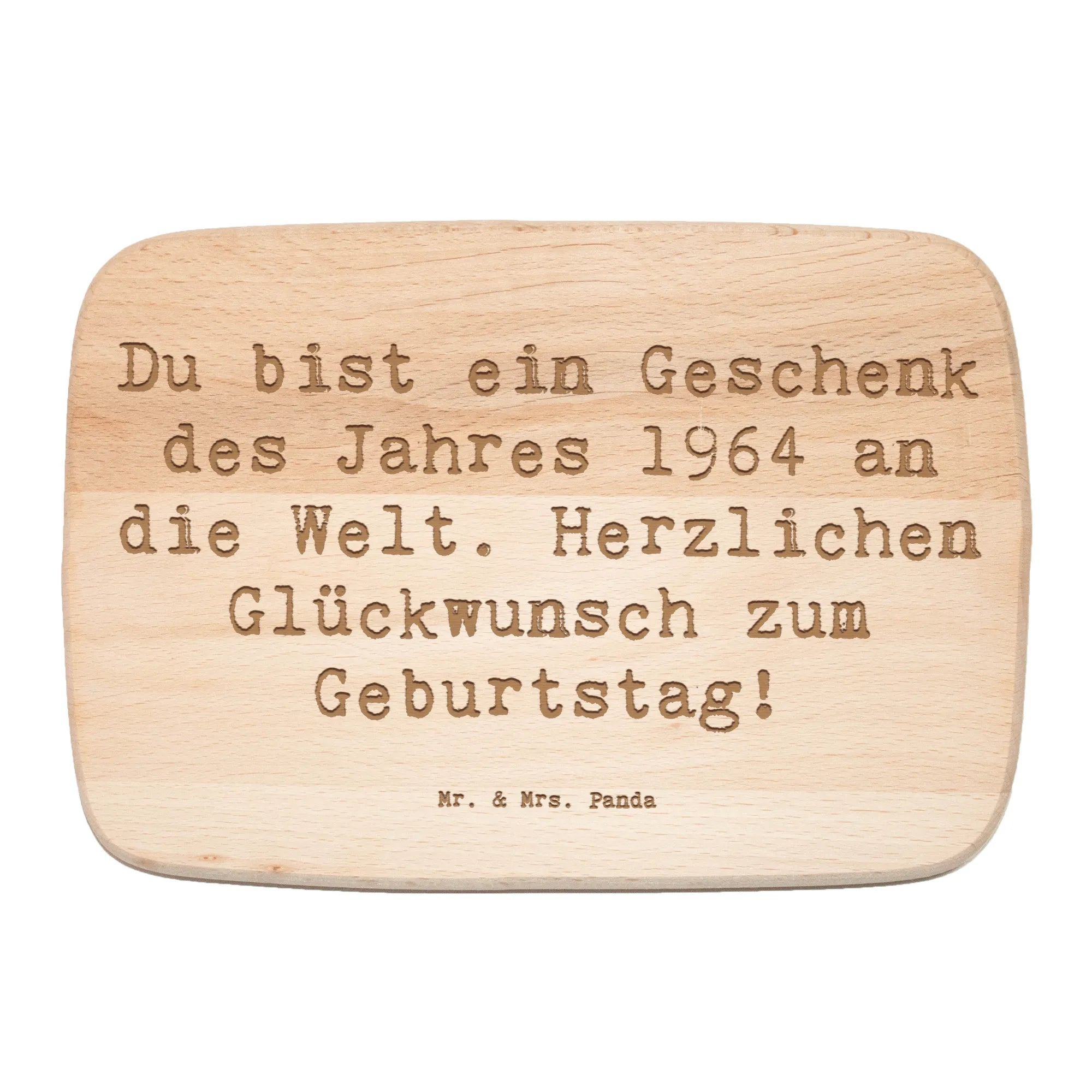 Das Frühstücksbrett "1964 Geburtstag" von Mr. & Mrs. Panda ist nicht nur ein praktisches Küchenaccessoire, sondern auch ein liebevolles Geschenk für alle Geburtstagskinder, die in diesem Jahr geboren wurden. Mit dem süßen Motiv und dem liebevollen Spruch „Du bist ein Geschenk des Jahres 1964 an die Welt. Herzlichen Glückwunsch zum Geburtstag!“, sorgt dieses hochwertige Frühstücksbrett aus robustem Birkenholz für strahlende Gesichter am Frühstückstisch oder bei jeder anderen Mahlzeit.