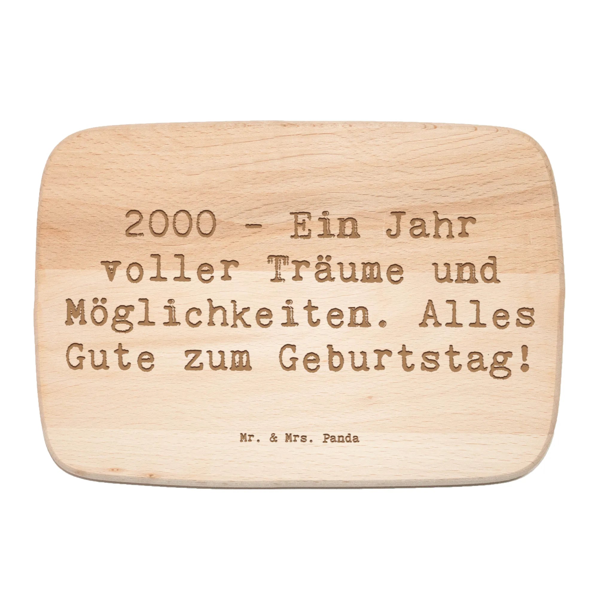 Das Frühstücksbrett 2000 von Mr. & Mrs. Panda ist das perfekte Geschenk für alle, die 2023 ihren 23. Geburtstag feiern! Egal, ob du es für dich selbst oder für einen lieben Menschen kaufst, dieses zauberhafte Brett aus robustem Birkenholz mit dem spritzigen Motiv „2000 – Ein Jahr voller Träume und Möglichkeiten. Alles Gute zum Geburtstag!“ bringt Freude in jede Küche.