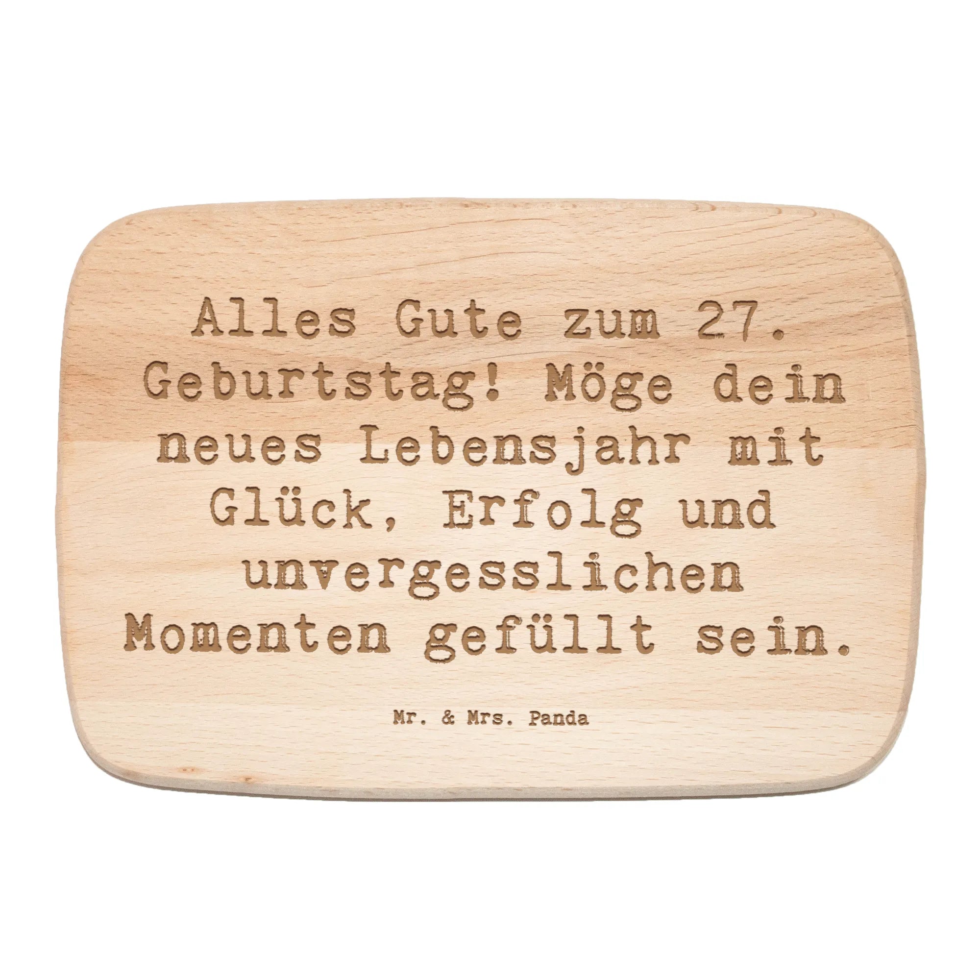 Suchst du nach einem besonderen Geschenk für den 27. Geburtstag? Dann ist unser Frühstücksbrett "Alles Gute zum 27. Geburtstag! Möge dein neues Lebensjahr mit Glück, Erfolg und unvergesslichen Momenten gefüllt sein" von Mr. & Mrs. Panda genau das Richtige für dich!