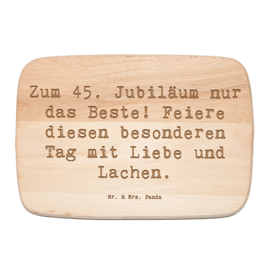Feiere den 45. Geburtstag mit einem ganz besonderen Frühstücksbrett von Mr. & Mrs. Panda! Dieses einzigartige und edle Frühstücksbrett aus robustem Birkenholz ist nicht nur ein praktisches Küchenutensil, sondern auch ein liebevolles Geschenk, das Freude und Fröhlichkeit verbreitet. Mit der liebevollen Lasergravur, die den Spruch 'Zum 45. Jubiläum nur das Beste! Feiere diesen besonderen Tag mit Liebe und Lachen.' ziert, wird jedes Frühstück zu einem unvergesslichen Erlebnis. Egal ob für Freunde, Familie oder Kollegen, dieses Frühstücksbrett ist das perfekte Geschenk für all jene, die ihren 45. Geburtstag gebührend feiern wollen.