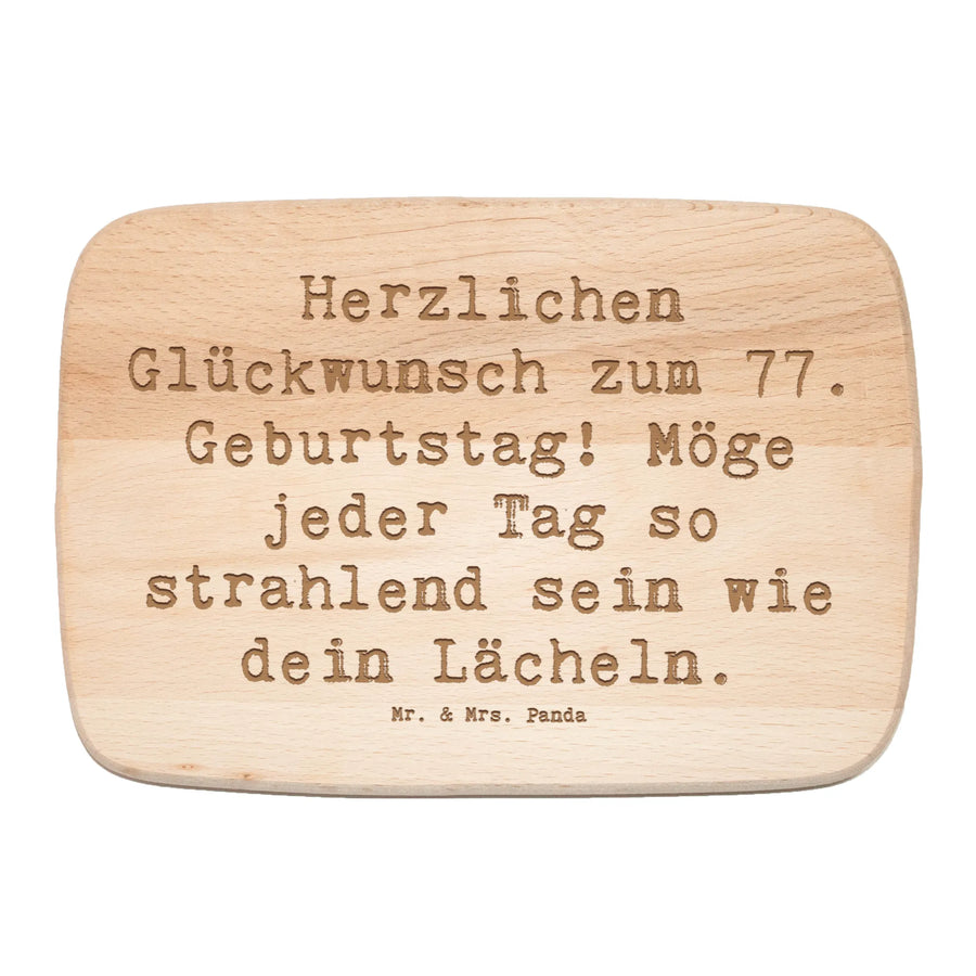 Das wunderschöne Frühstücksbrett von Mr. & Mrs. Panda ist das perfekte Geschenk zum 77. Geburtstag! Mit dem liebevollen Spruch 'Herzlichen Glückwunsch zum 77. Geburtstag! Möge jeder Tag so strahlend sein wie dein Lächeln.' wird jeder Frühstücksmoment zu etwas Besonderem.