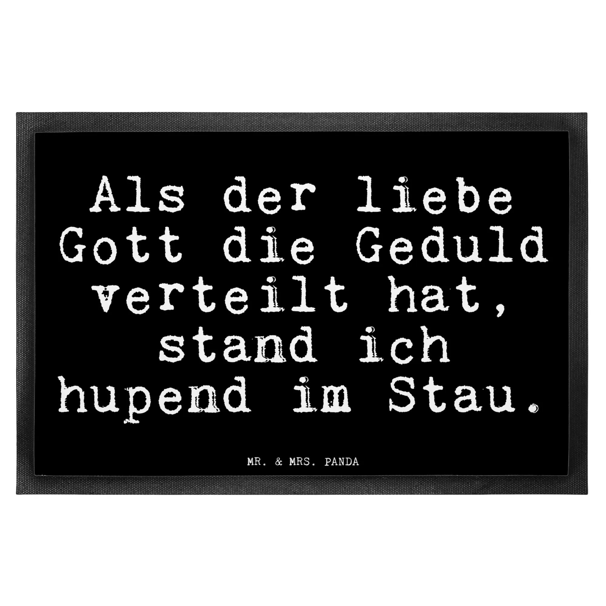 Die Fußmatte 'Als der liebe Gott die Geduld verteilt hat, stand ich hupend im Stau.' von Mr. & Mrs. Panda ist nicht nur ein stylisches Accessoire für deine Haustür, sondern auch ein wahrhaft erfrischendes Statement. Sie bringt mit einem witzigen Spruch humorvollen Charme in jeden Eingangsbereich. Ob in der Wohnung oder am Haus, egal wo du sie liegst, sie versorgt dich mit einem Lächeln und einem liebevollen Willkommen.