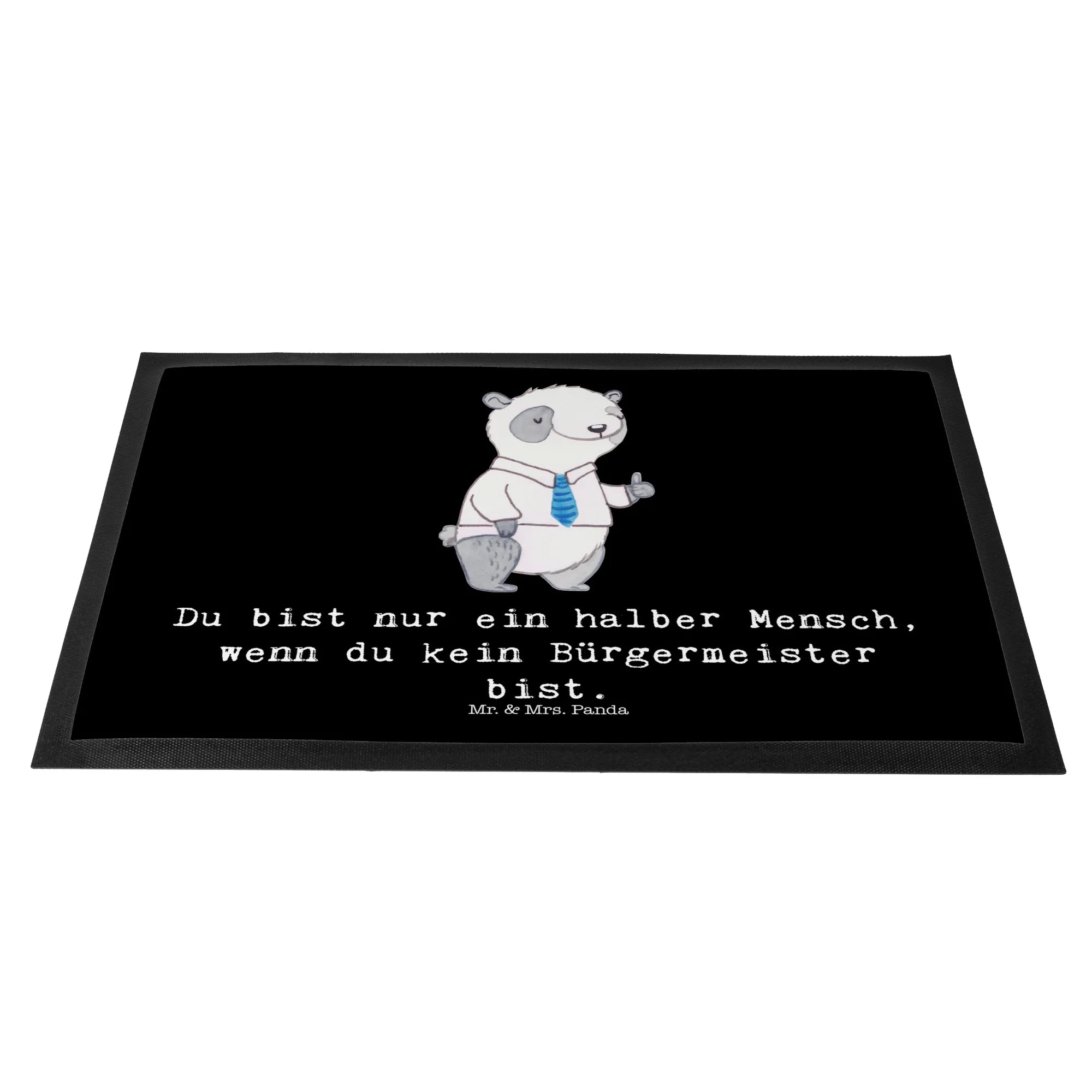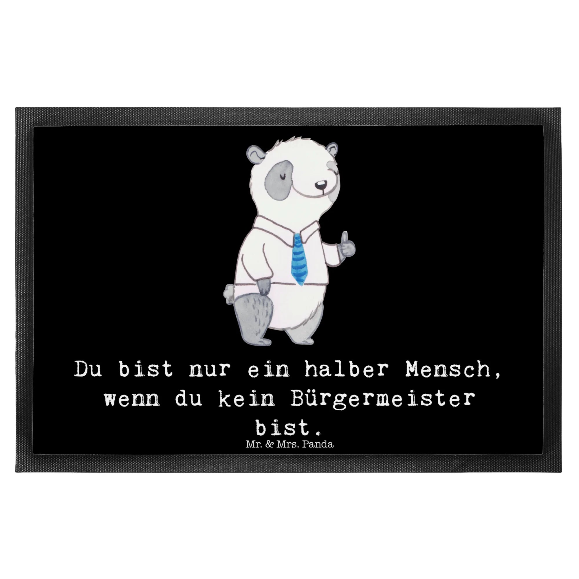 Willkommen in der zauberhaften Welt von Mr. & Mrs. Panda, wo wir dir unsere liebevolle Fußmatte "Bürgermeister mit Herz" aus der einzigartigen Kollektion "Berufe" vorstellen. Diese Fußmatte ist nicht nur ein praktisches Accessoire für deinen Eingangsbereich, sondern auch ein ganz besonderes Geschenk für all diejenigen, die das Bürgermeisteramt mit Leidenschaft ausüben. Diese charmante Fußmatte ist mit einem süßen Panda-Motiv versehen, der stolz eine Krawatte trägt und mit einem Daumen nach oben für sein Amt wirbt. Der Spruch "Du bist nur ein halber Mensch, wenn du kein Bürgermeister bist" verleiht der Matte eine humorvolle und zugleich respektvolle Note.