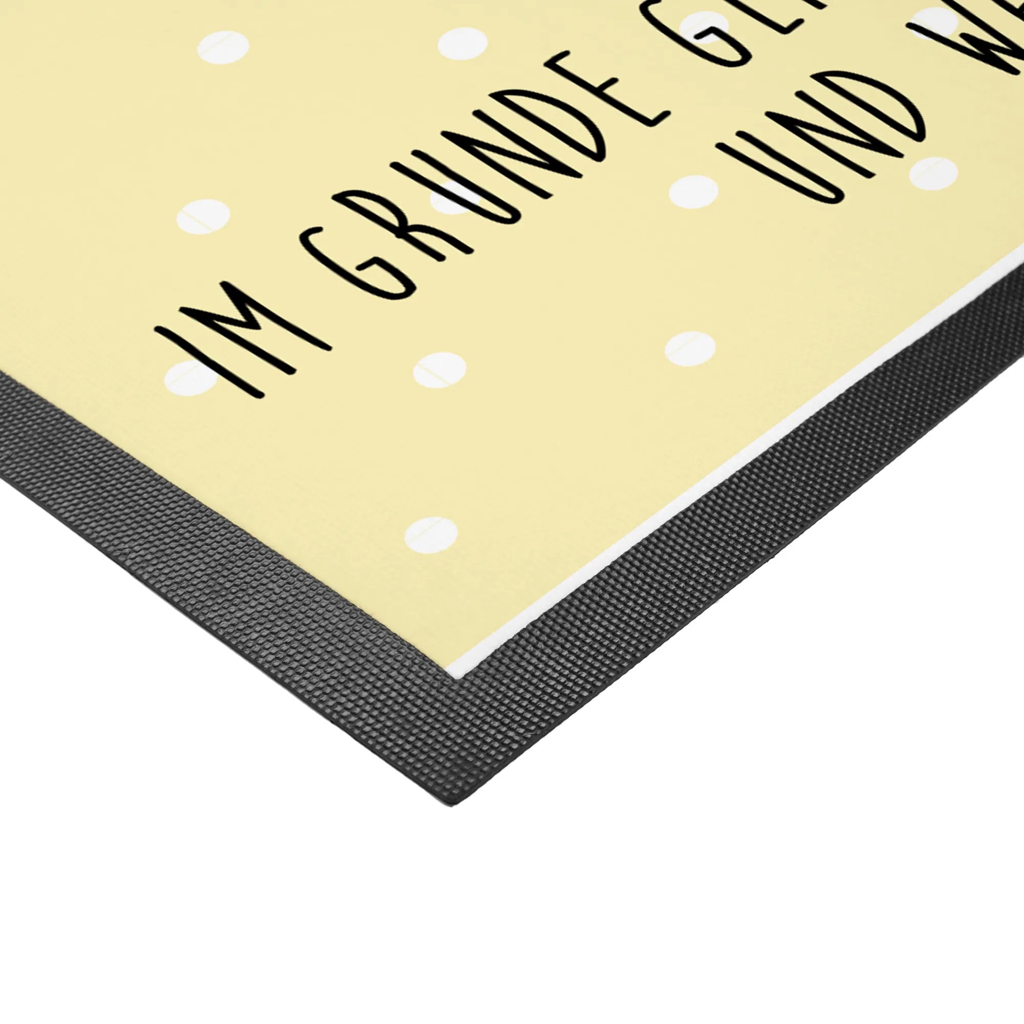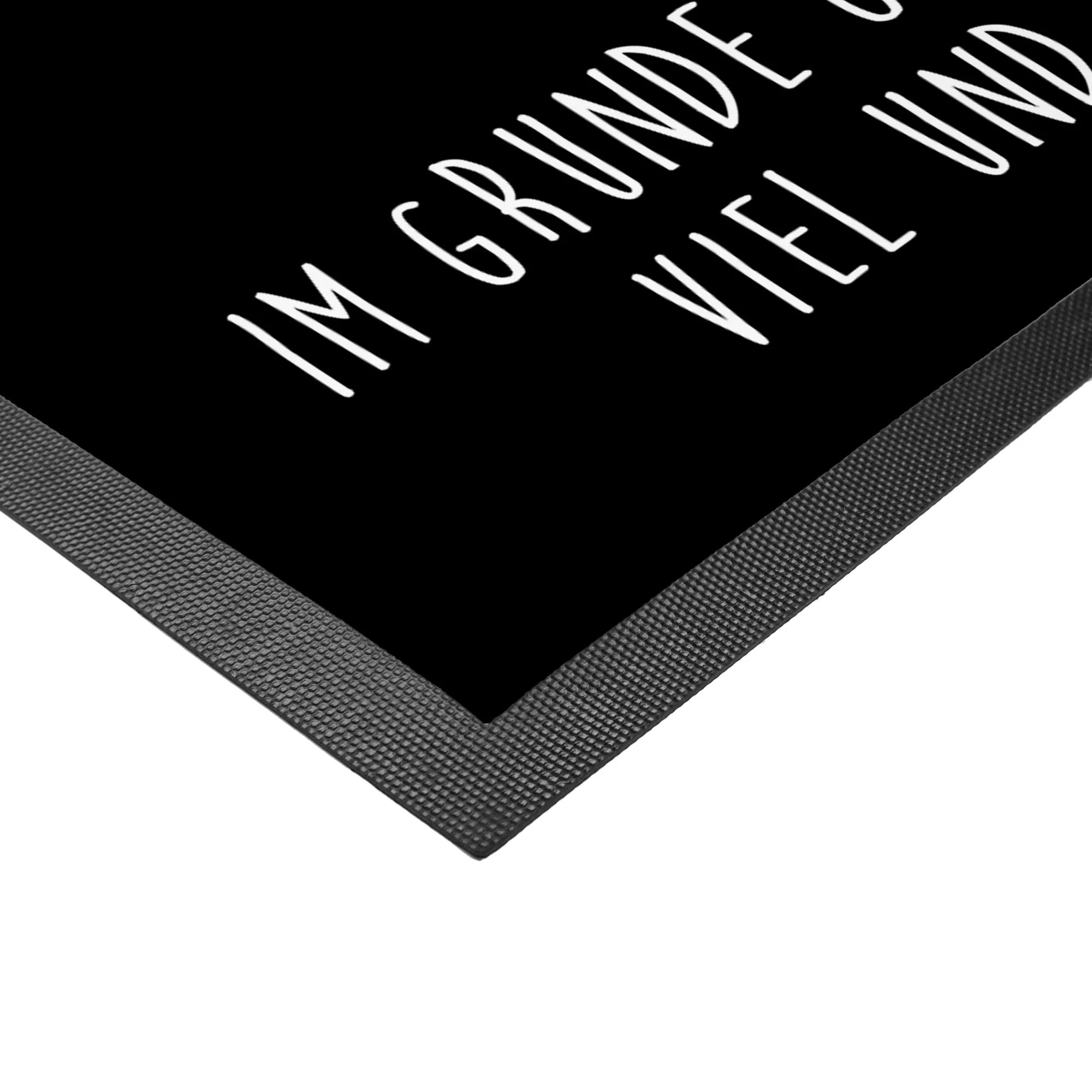 Lass deinen Eingangsbereich erstrahlen mit der einzigartigen Fußmatte von Mr. & Mrs. Panda! Diese Matte hat die Maße 400 mm x 600 mm x 5 mm und verleiht deinem Zuhause mit ihren originellen Sprüchen und Motiven einen besonderen Charme. Die Vorderseite besteht aus robustem Polyesterfilz, der nicht nur gut aussieht, sondern auch langlebig ist. Die rutschfeste gummierte Rückseite sorgt für Sicherheit, während der breite Gummirand das Ausfransen verhindert. Ob drinnen oder draußen, diese Fußmatte ist wetterfest und abriebfest, perfekt für alle Bedingungen. Pflegeleicht: einfach ausschütteln, absaugen oder bei hartnäckigen Flecken bis 30°C waschen. Mach deinen Eingangsbereich zu einem Ort der Freude mit dieser wundervollen Fußmatte, erhältlich in verschiedenen Größen!