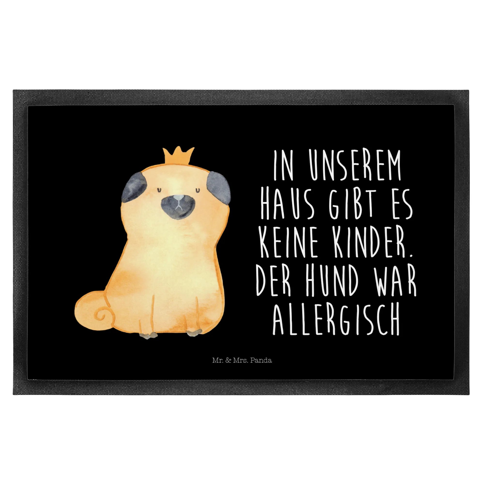 Die Fußmatte "Mops Krone" von Mr. & Mrs. Panda ist mehr als nur ein einfacher Fußabtreter – sie ist das perfekte Accessoire für dein Zuhause! Mit ihrem humorvollen Spruch "In unserem Haus gibt es keine Kinder. Der Hund war allergisch." wird sie nicht nur zum Blickfang im Eingangsbereich, sondern zaubert auch jedem Hundeliebhaber ein Lächeln ins Gesicht.