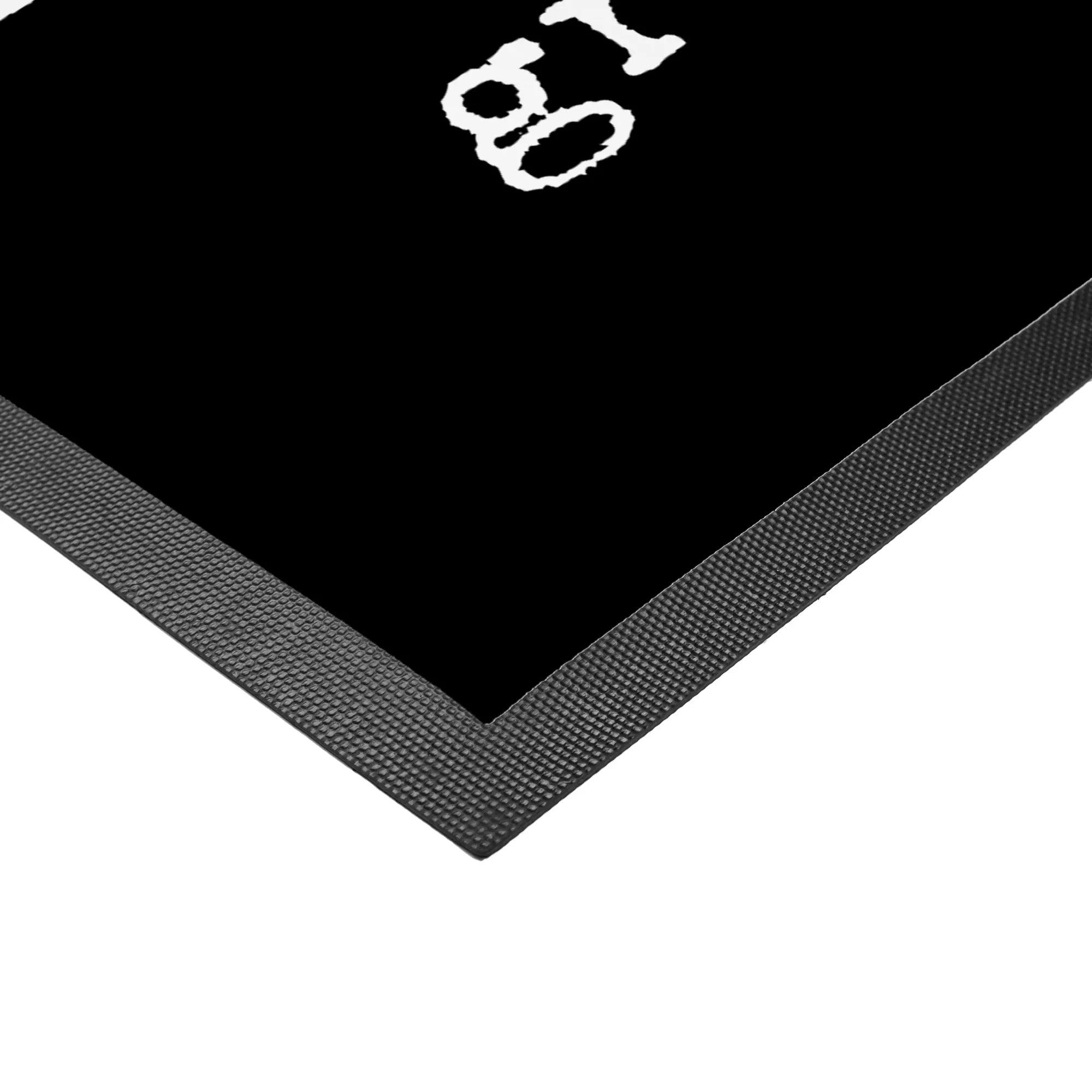 Die Fußmatte hat die ideale Größe von 40 cm x 60 cm und passt somit perfekt an jede Eingangstür. Mit ihrem hochwertigen, robusten Polyesterfilz ist sie nicht nur schick, sondern auch funktional. Der breite Gummirand verhindert das Ausfransen und sorgt für einen rutschfesten Halt.