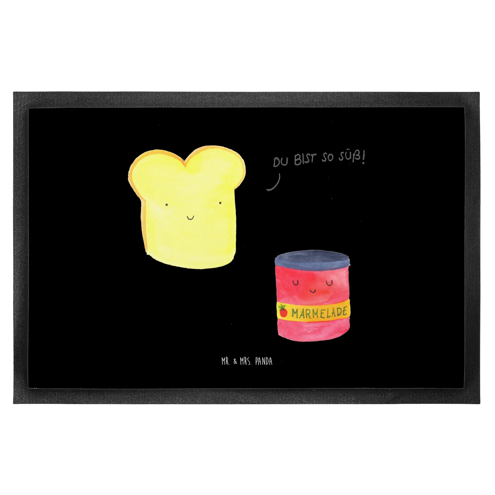 Die wunderschöne Fußmatte Toast & Marmelade aus der kleinen Welt von Mr. & Mrs. Panda ist der ideale Begleiter für dein Zuhause! Mit ihrem fröhlichen Motiv von einem Toast und einer Marmelade, die ineinander verliebt sind, zaubert sie ein Lächeln auf jedes Gesicht.