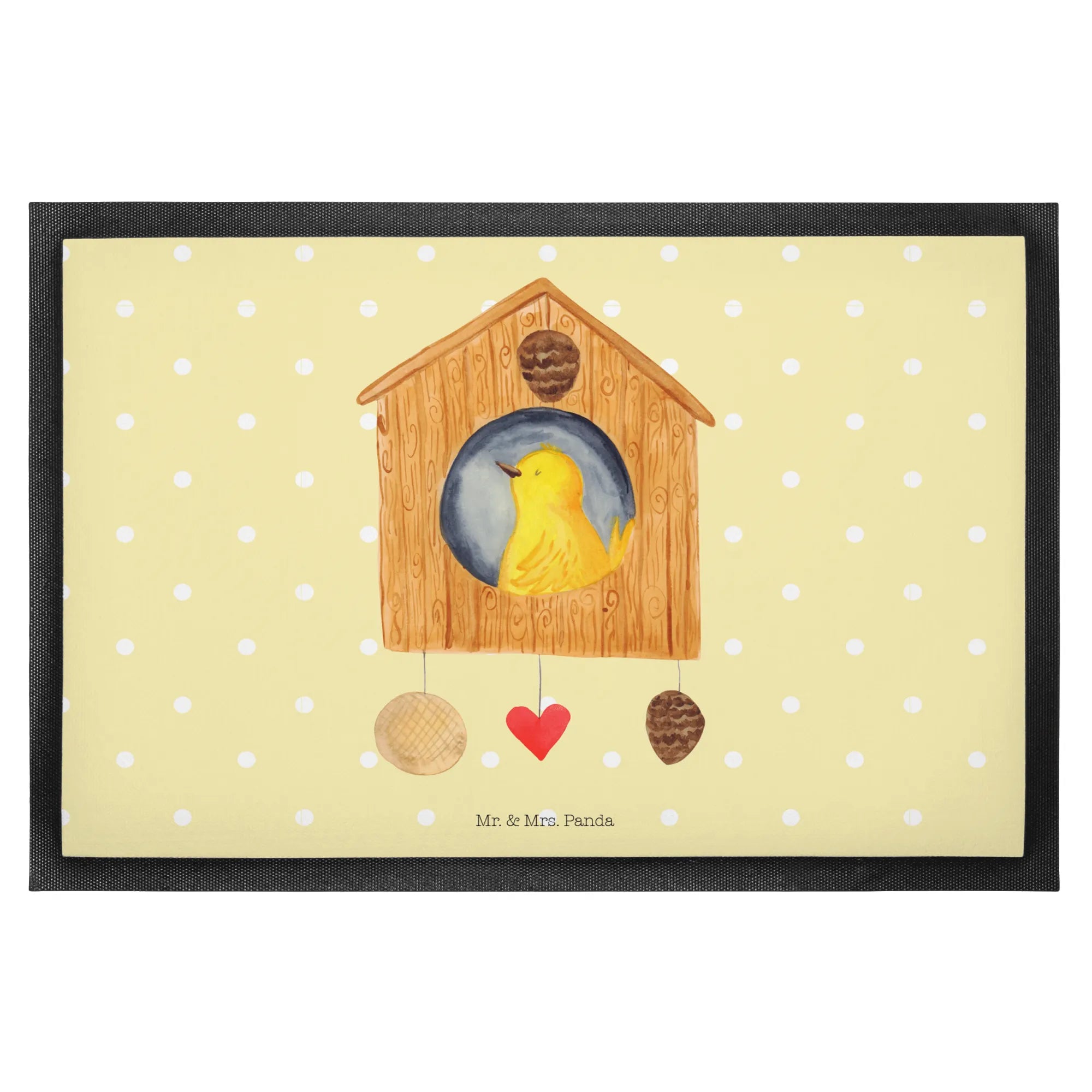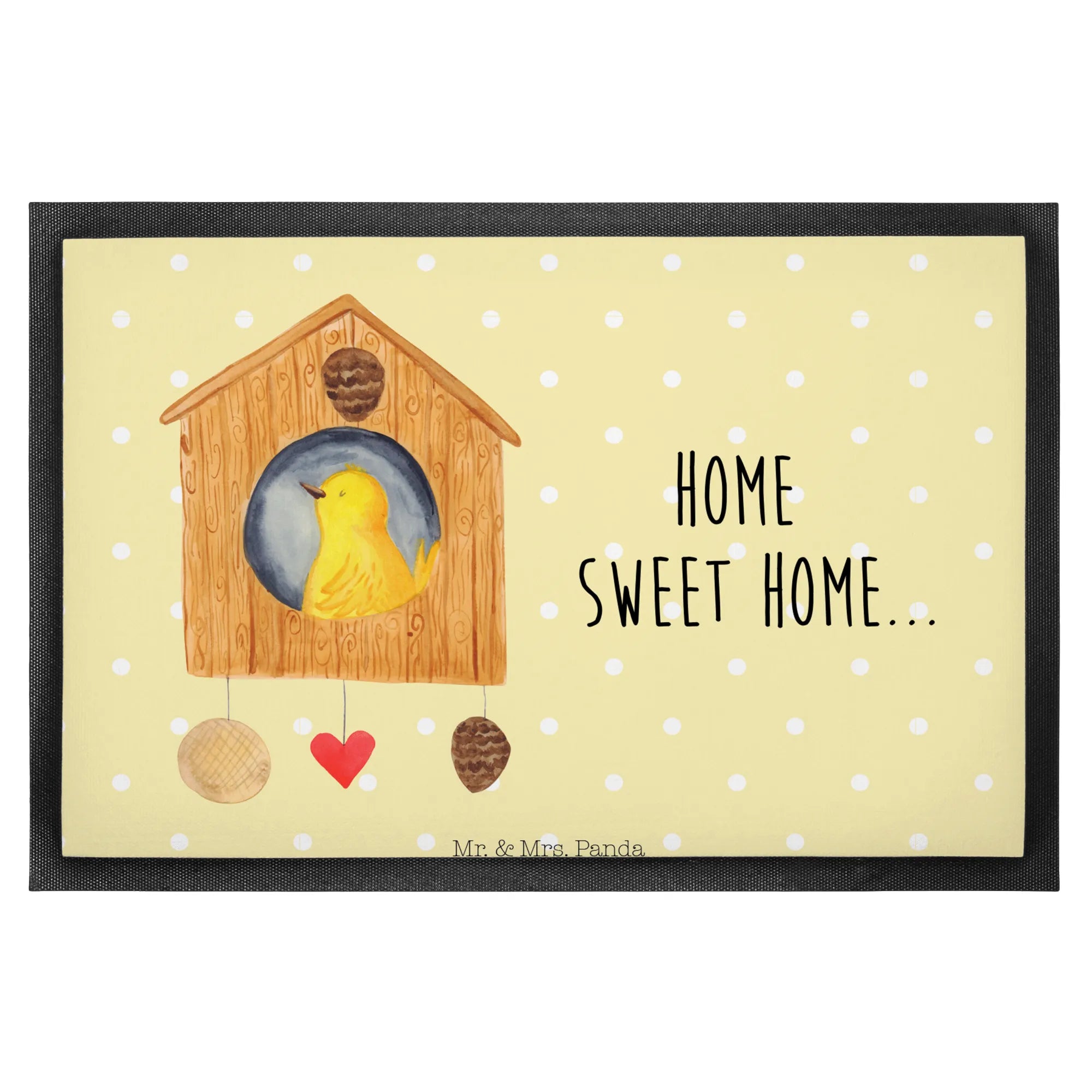 Willkommen daheim! Mit der Fußmatte "Vogelhaus – Home sweet home" von Mr. & Mrs. Panda empfängst du jeden Gast mit einem liebevollen Blickfang. Das zarte Vogelhaus-Motiv in Pastellgelb und der zufriedene kleine Vogel bringen Wohlfühl-Atmosphäre an deine Haustür. 🌼