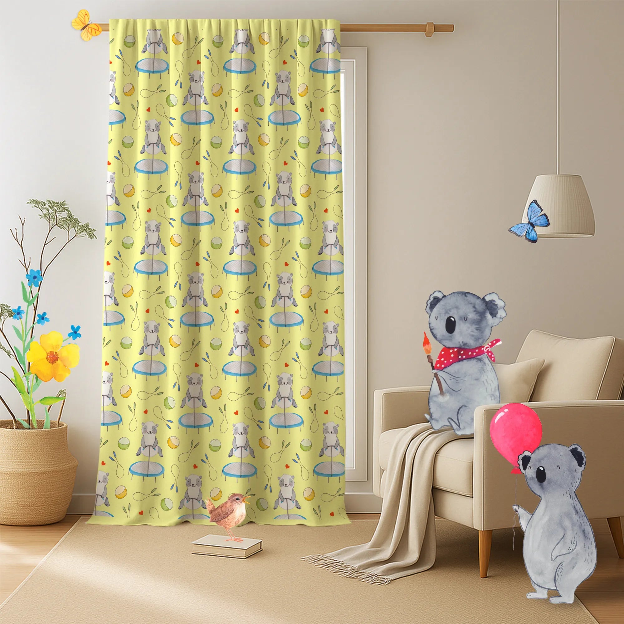 Gardine Panda Trampolin springen Muster