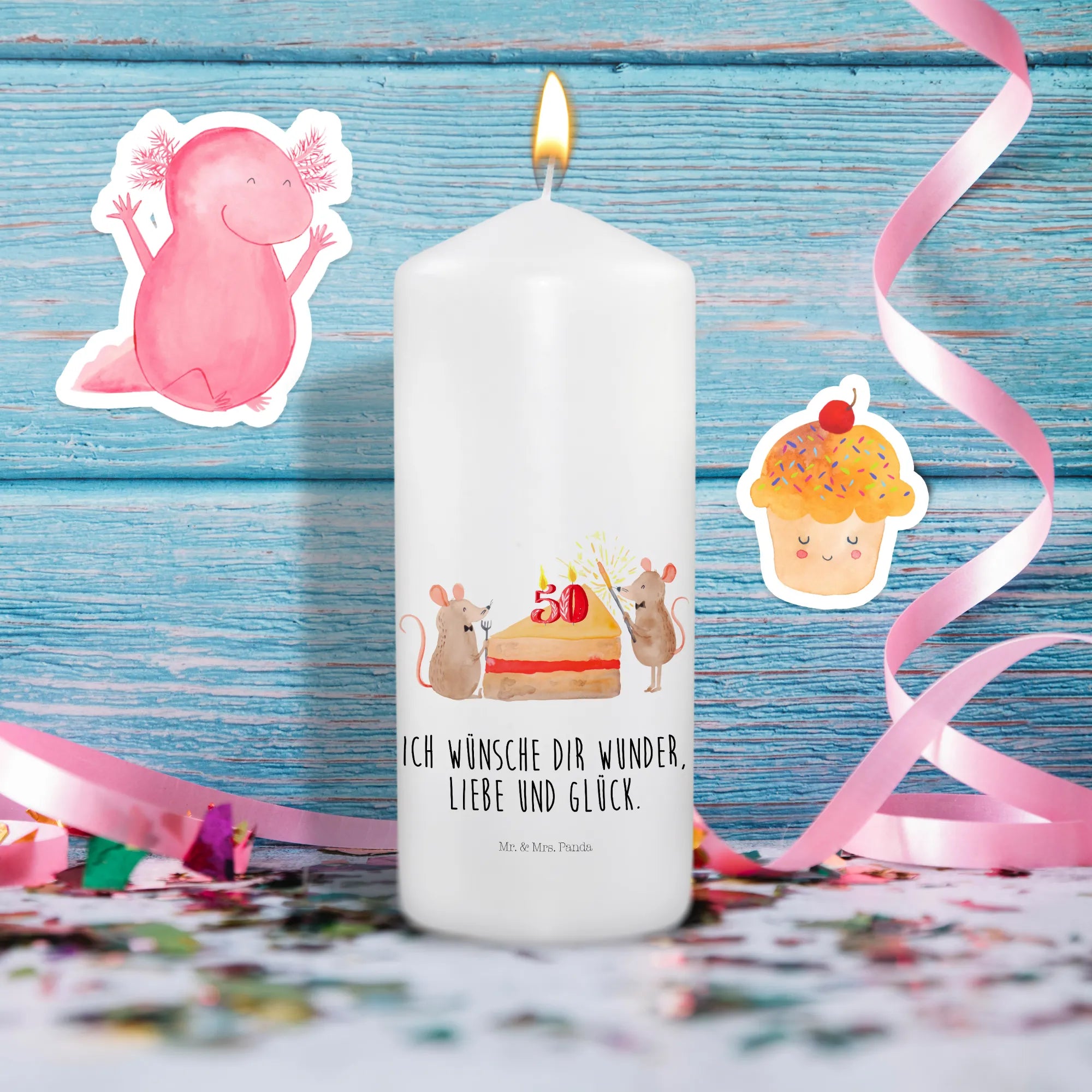 Möchtest du einem ganz besonderen Menschen ein Geschenk machen, das von Herzen kommt? Dann ist die Geburtstagskerze "50. Geburtstag Mäuse Kuchen" von Mr. & Mrs. Panda perfekt! Diese edle und wunderschöne Geburtstagskerze ist nicht nur ein schicker Blickfänger, sondern verbreitet auch eine wundervolle Stimmung. Die kleinen Mäuse, die freudig um eine köstliche Geburtstagstorte versammelt sind, bringen sofort ein Lächeln ins Gesicht und erfreuen das Herz. Mit dem liebevollen Spruch "Ich wünsche dir Wunder, Liebe und Glück" richtet sich diese Kerze ganz speziell an die Jubelperson und macht jeden 50. Geburtstag unvergesslich!