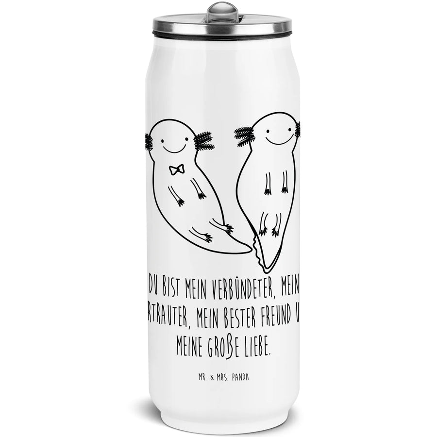 Entdecke die zauberhafte Getränkedosen Trinkflasche Axolotl Axel+Lotte von Mr. & Mrs. Panda! Diese wunderschöne und edle Edelstahl Trinkflasche ist ideal für alle, die den besonderen Charme von Axolotls lieben. Mit einem Motiv, das die beiden niedlichen Axolotl zeigt, die Seite an Seite schwimmen, bringt sie Freude in Deinen Alltag. Das fröhliche Design in sanften Pastelltönen sorgt für ein Boho-Flair, das in jedem Moment des Lebens leuchtet.