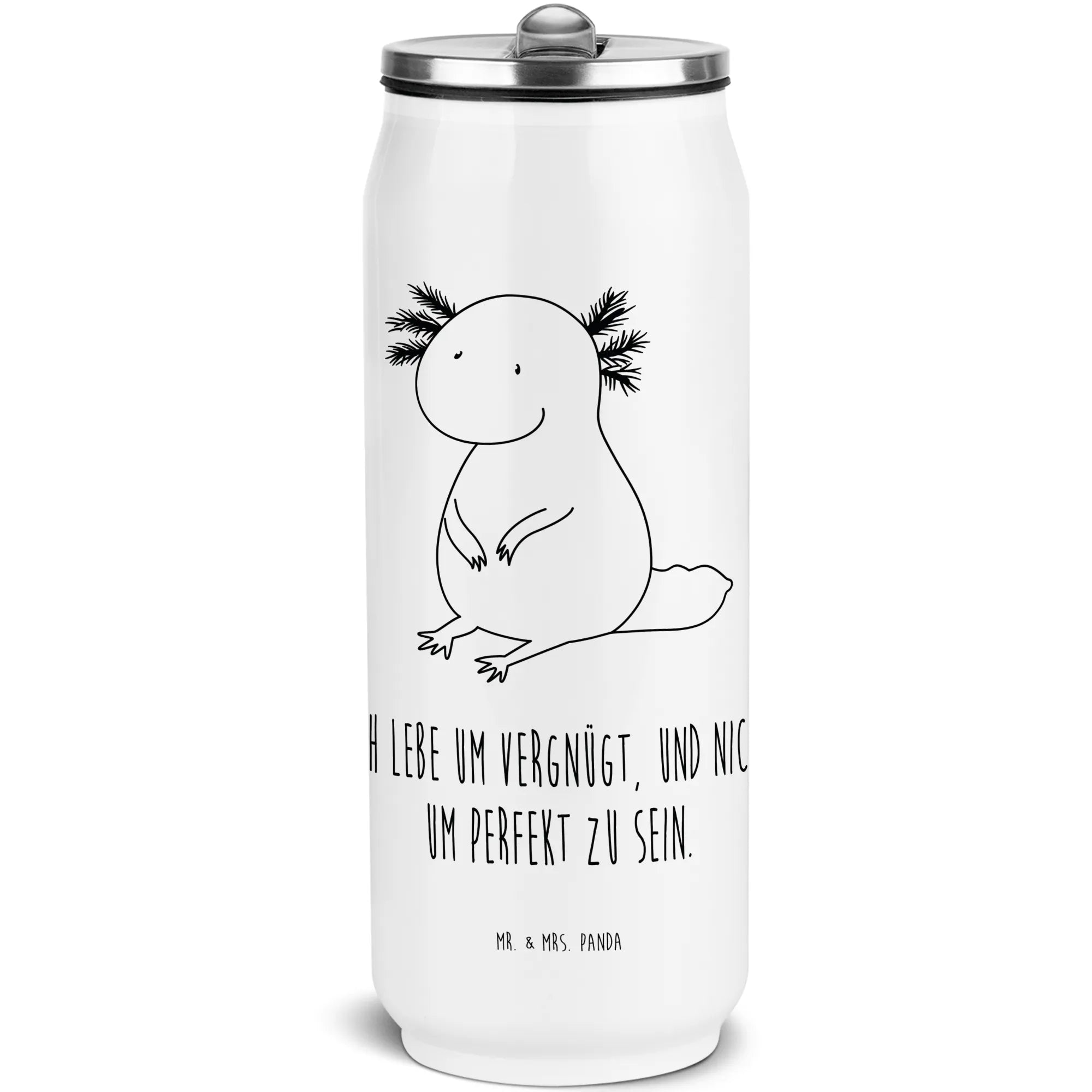 Die wunderschöne und edle Edelstahl Getränkedosen Trinkflasche von Mr. & Mrs. Panda mit dem niedlichen Axolotl Motiv ist das perfekte Geschenk für alle, die das Leben voller Freude und Zufriedenheit schätzen. Ob beim Spaziergang, beim Sport oder im Büro – diese Flasche ist der ideale Begleiter für jeden Moment.