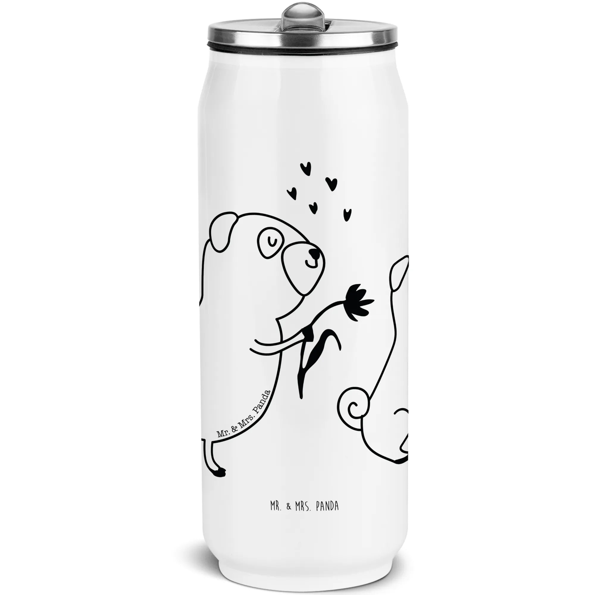 Die Edelstahl Getränkedosen Trinkflasche "Mops verliebt" von Mr. & Mrs. Panda ist mehr als nur eine Flasche – sie ist ein Statement der Hundeliebe! 🐾 Mit ihrem niedlichen Motiv von zwei verliebten Möpsen, die sich eine Blume schenken, ist sie perfekt für alle, die ihren vierbeinigen Freund und die Liebe feiern möchten.