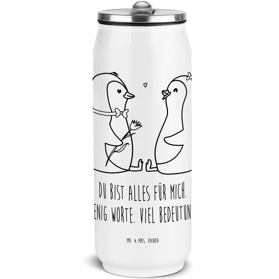 Entdecke die bezaubernde Edelstahl Getränkedosen Trinkflasche von Mr. & Mrs. Panda mit dem einzigartigen Motiv des Pinguin Pärchens. Diese liebevoll gestaltete Flasche ist nicht nur ein praktischer Begleiter für den Alltag, sondern auch ein wundervolles Liebesgeschenk für deinen Partner oder deine Partnerin.