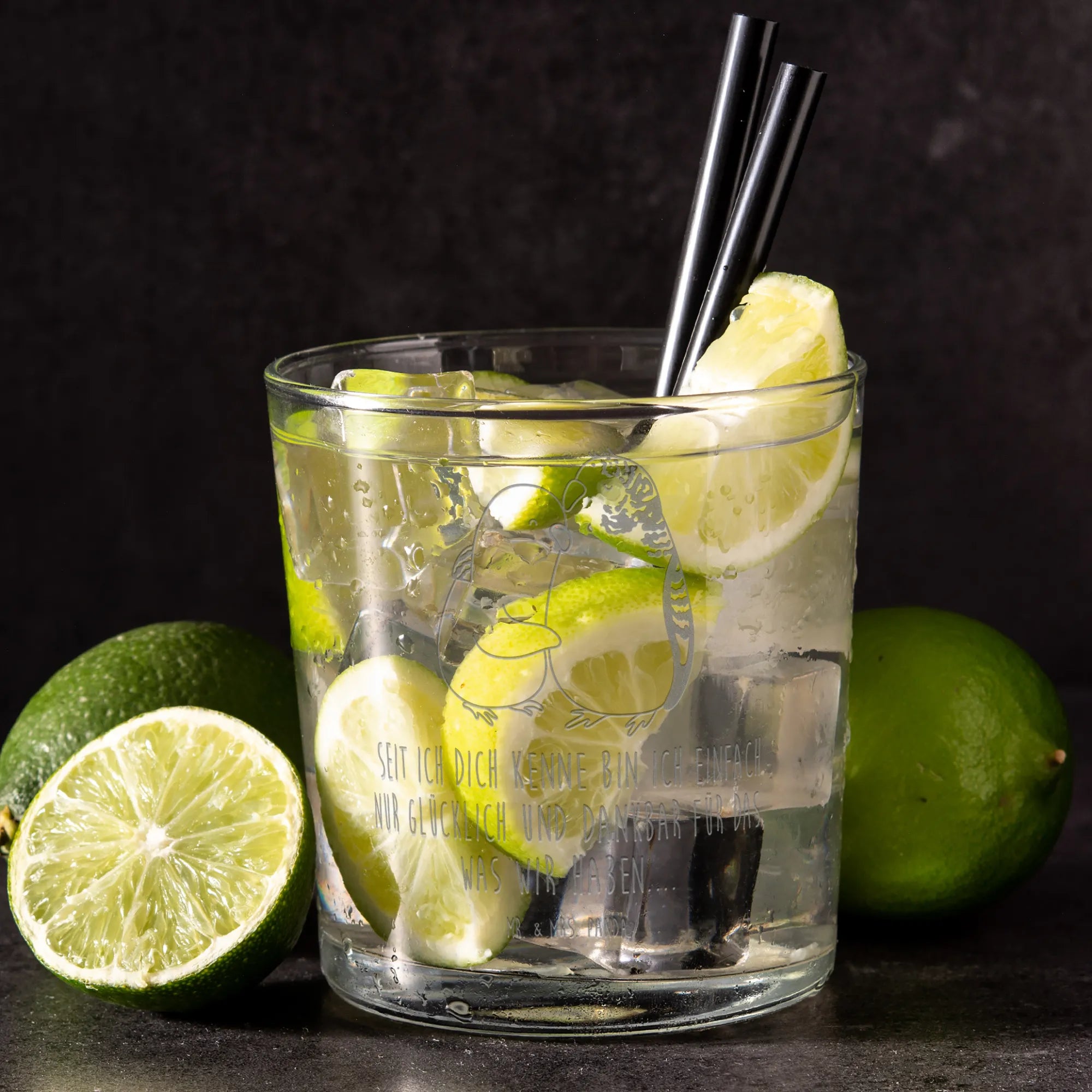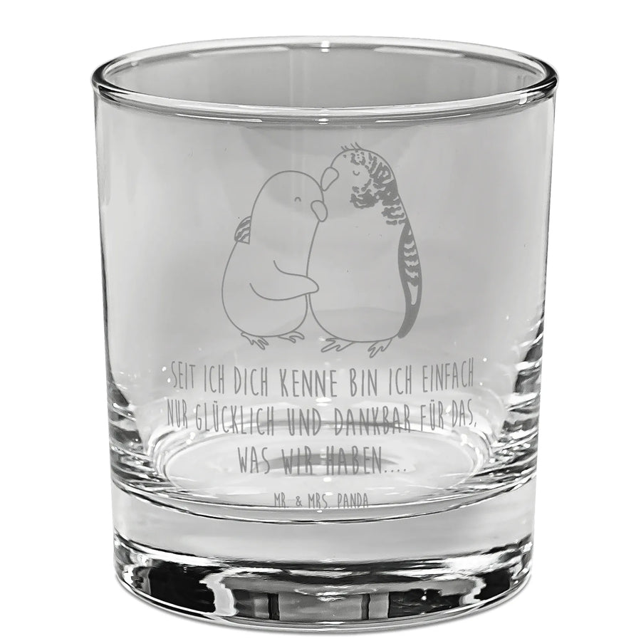 Mit der liebevollen Lasergravur wird das Motiv eines Pärchens von Wellensittichen, die sich zärtlich umarmen, zum echten Hingucker. In sanften Farben zeigt es die Verbundenheit und Nähe, die in jeder Beziehung wichtig sind. Der Spruch "Seit ich dich kenne bin ich einfach nur glücklich und dankbar für das, was wir haben...." ergänzt das Design auf eine wunderschöne Weise und macht das Glas zu einem emotionalen Begleiter für besondere Momente.