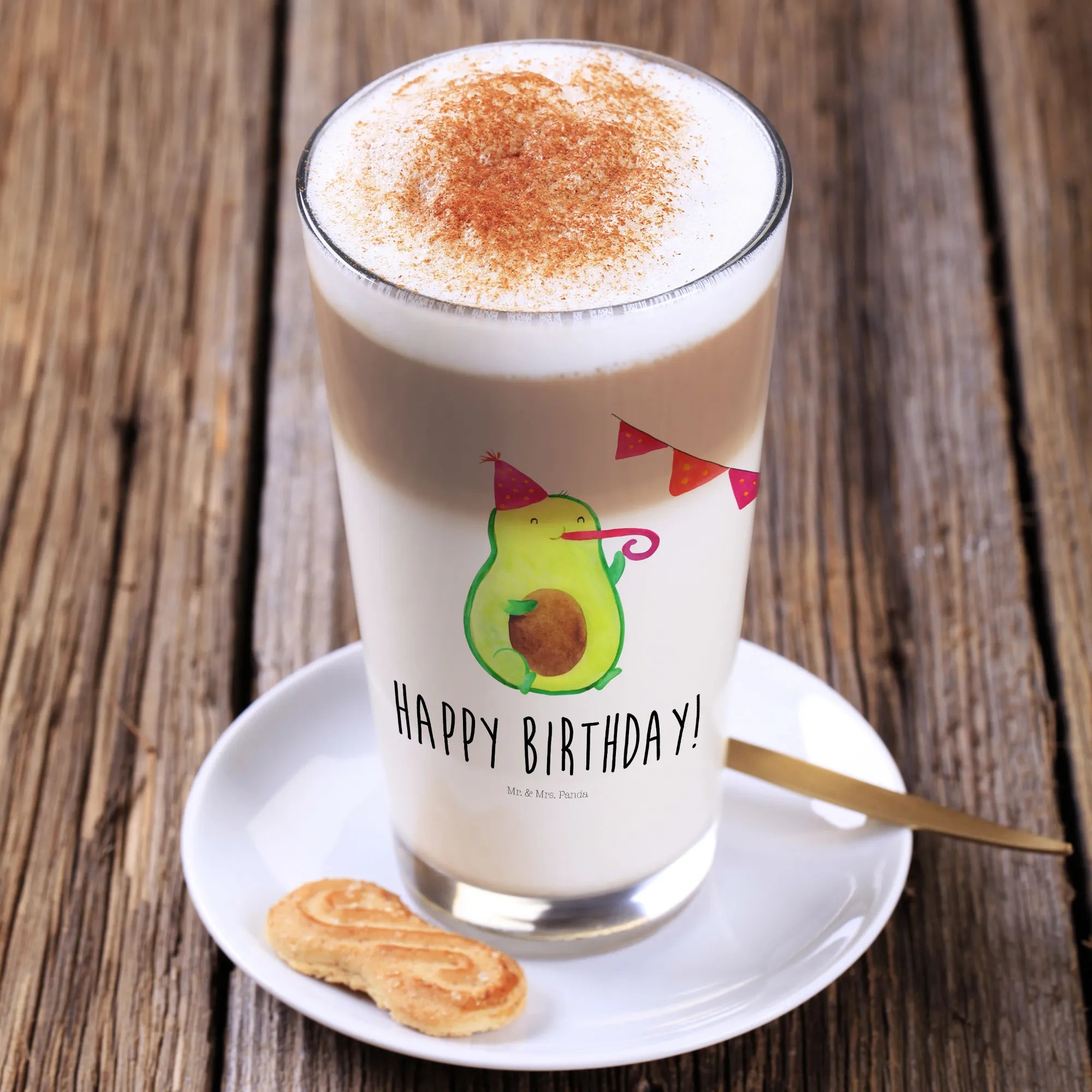 Entdecke unser einzigartiges Cappuccino Glas mit dem fröhlichen Avocado Birthday Motiv aus der Kollektion Avocado von Mr. & Mrs. Panda! Dieses liebevoll gestaltete Trinkglas ist nicht nur ein echter Hingucker, sondern auch perfekt als Geschenk für alle Avocado-Liebhaber.