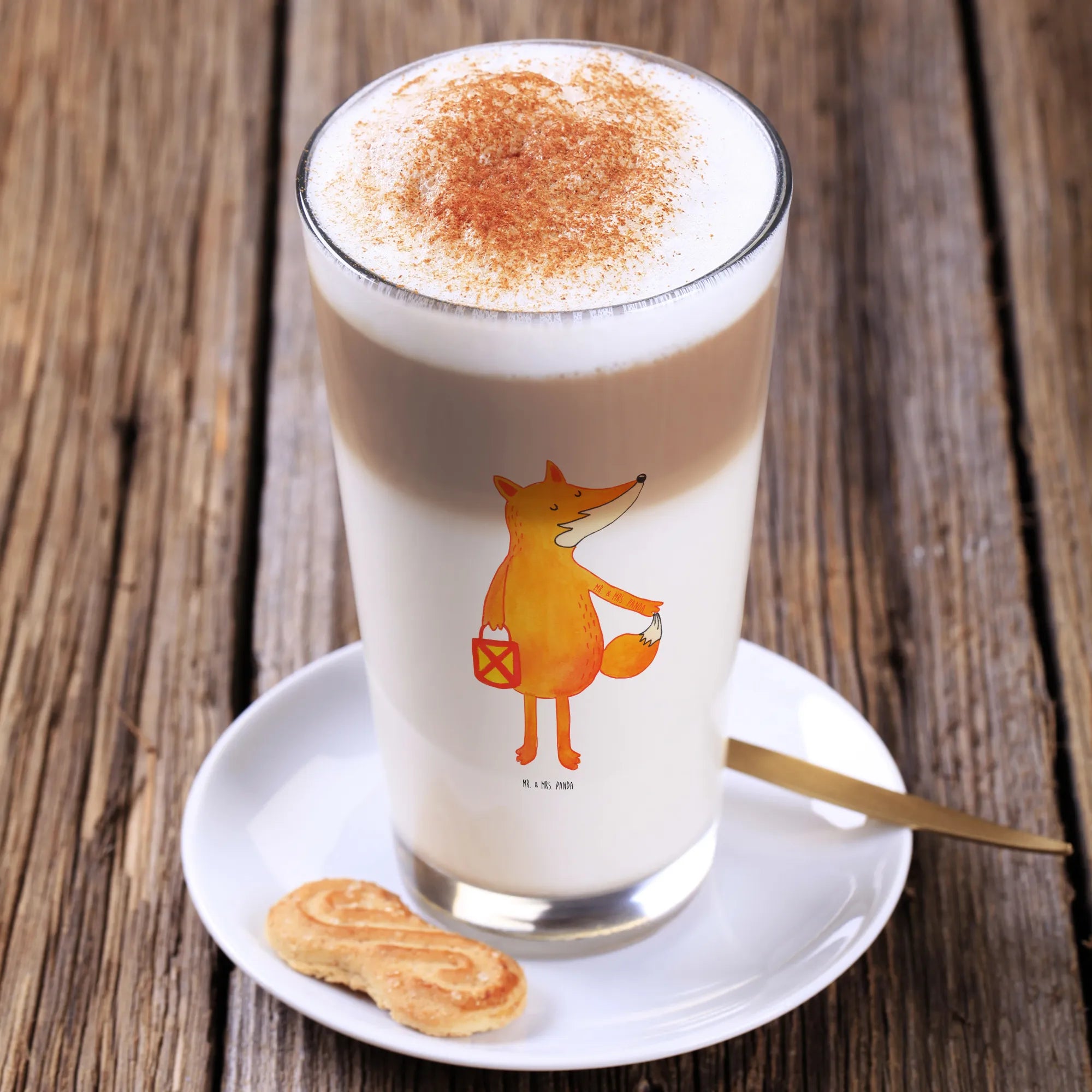 Das Cappuccino Glas "Fuchs Laterne" von Mr. & Mrs. Panda ist das perfekte Geschenk für alle, die die gemütliche Herbst- und Winterzeit lieben. Mit seinem niedlichen Motiv eines Fuchses, der eine Laterne trägt, bringt dieses Glas nicht nur Freude an jedem Tisch, sondern auch die besten Erinnerungen an laue Herbstabende.