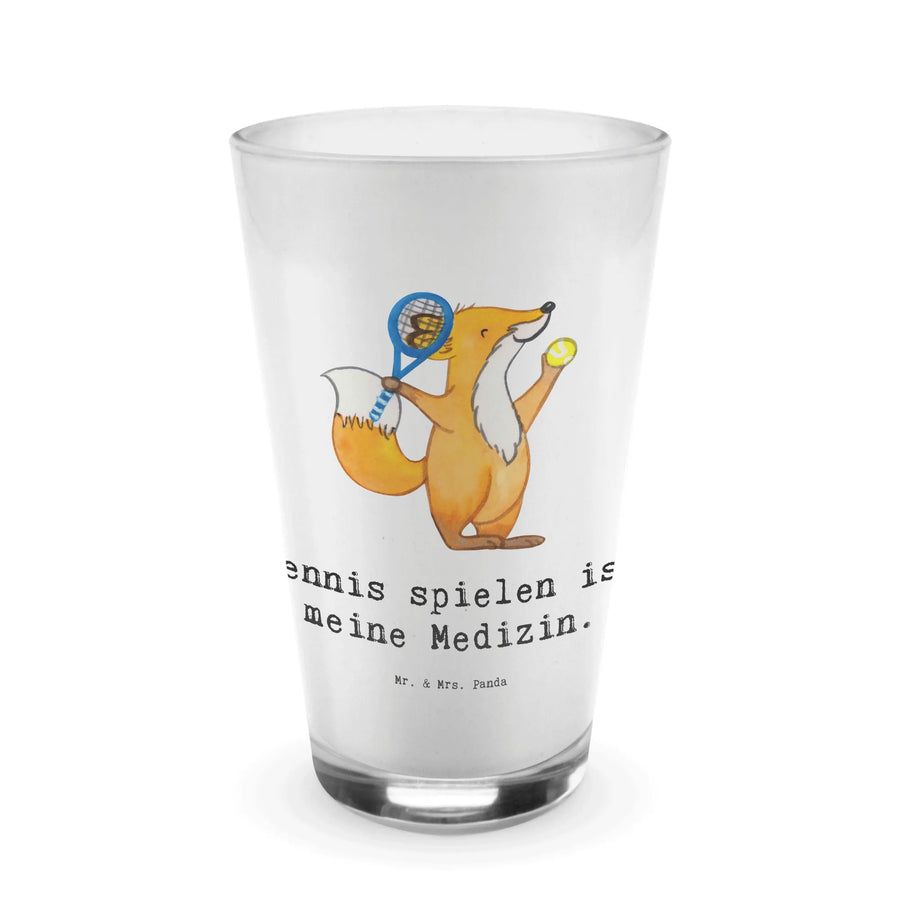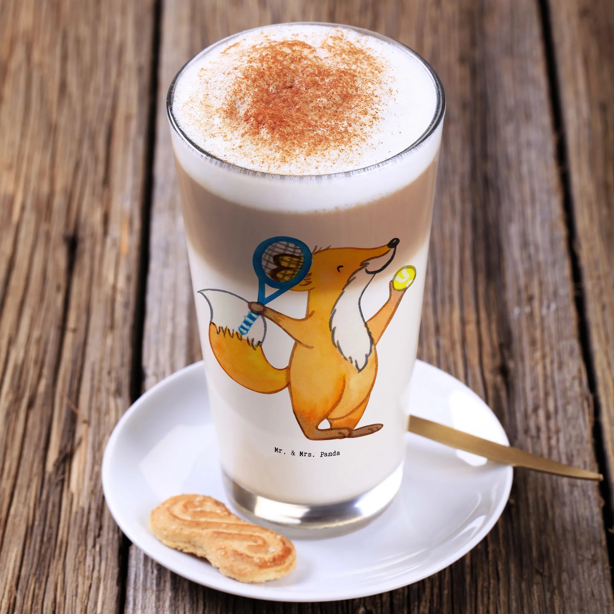 Das perfekte Cappuccino Glas von Mr. & Mrs. Panda, bedruckt mit dem bezaubernden Motiv 'Fuchs Tennis spielen Medizin', ist nicht nur ein stilvolles Accessoire für jeden Kaffeeliebhaber, sondern auch ein ideales Geschenk für Tennisbegeisterte! 🎾 Das hitzebeständige, dickwandige Premiumglas mit einer edlen, matten Oberfläche liegt angenehm in der Hand und eignet sich ideal für Latte Macchiato, Cocktails oder erfrischende Limonaden.