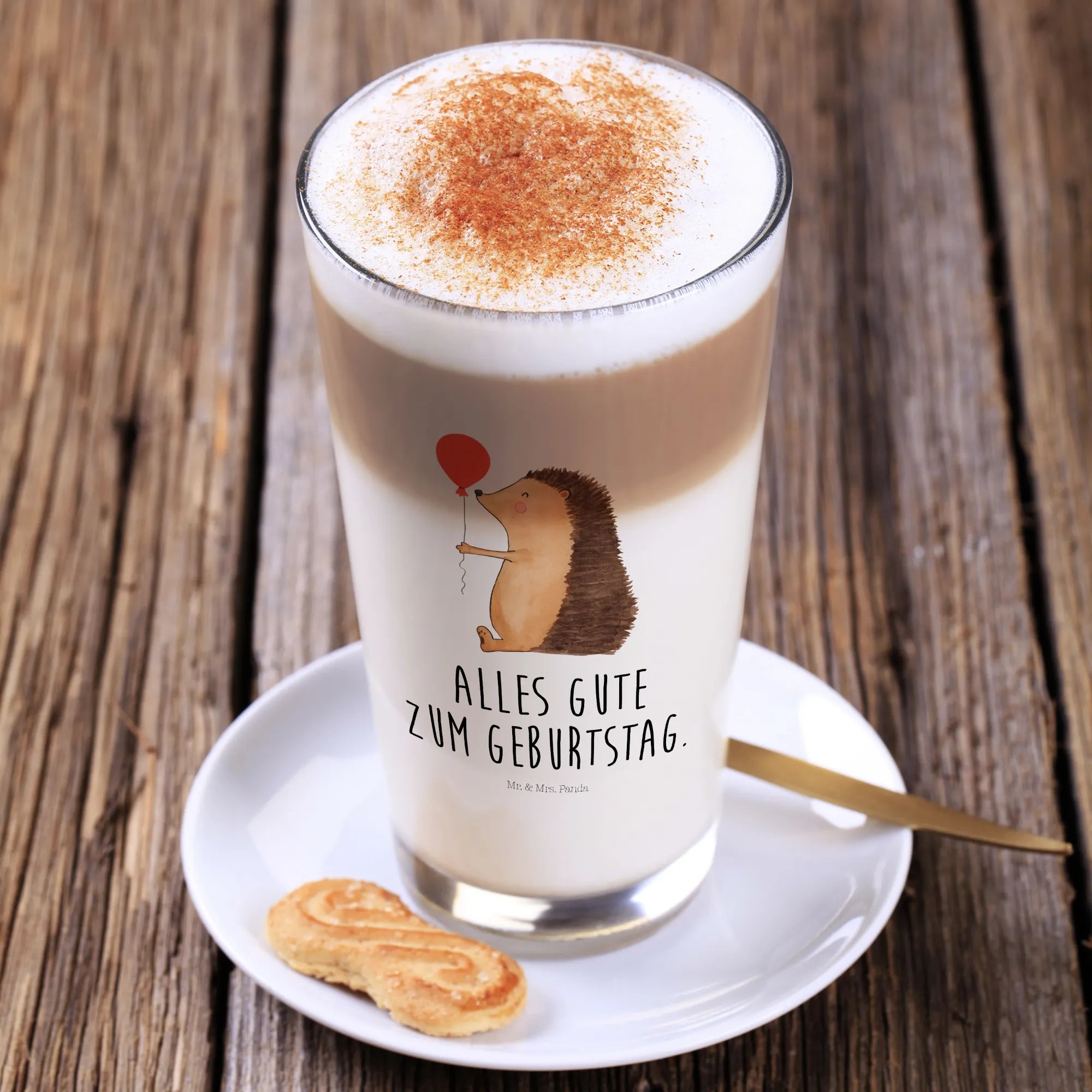 Das perfekte Glas für deinen nächsten Cappuccino oder Latte Macchiato! ☕️ Überrasche das Geburtstagskind mit dem bezaubernden Igel, der fröhlich einen Luftballon in der Hand hält. 🎈 Dieses edle Glas von Mr. & Mrs. Panda aus der beliebten Small World Kollektion bringt gute Laune in jedes Zuhause.
