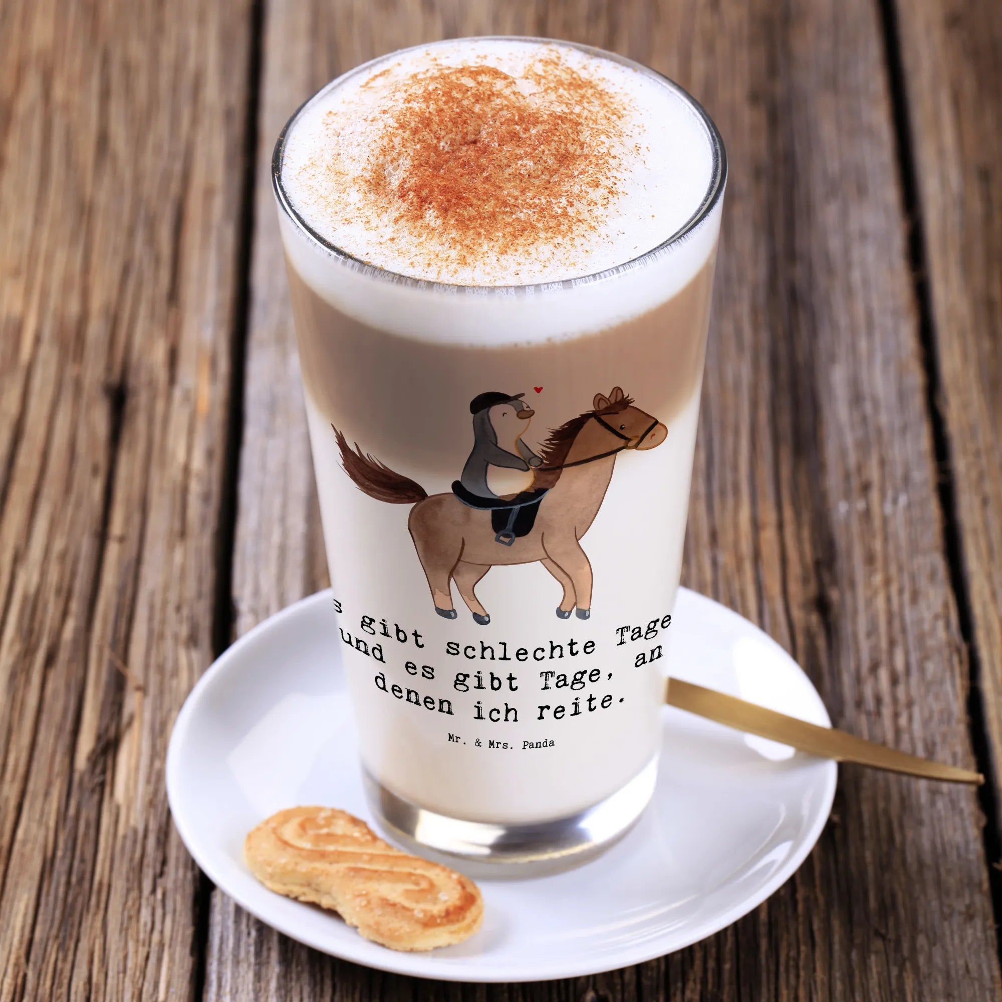 Das Cappuccino Glas "Pferd Reiten Tage" von Mr. & Mrs. Panda ist das perfekte Geschenk für jeden Pferdeliebhaber und Reitsport-Enthusiasten. In einer einzigartigen Verbindung von Funktionalität und Stil präsentiert sich dieses edle Trinkglas, das nicht nur optisch verzaubert, sondern auch mit liebevollen Sprüchen punktet. Mit dem Slogan "Es gibt schlechte Tage, und es gibt Tage, an denen ich reite" wirst Du daran erinnert, die schönen Momente im Leben zu genießen – besonders die, die mit dem Reiten verbunden sind.
