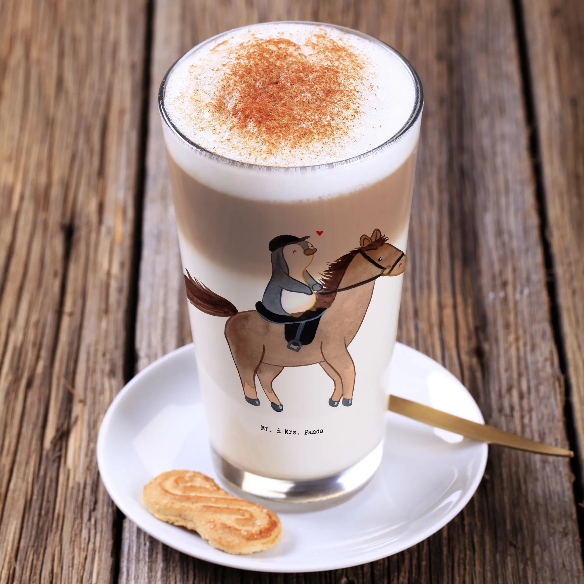 Bei jedem Schluck wirst Du an die Freude erinnert, die der Reitsport mit sich bringt, und an die unzähligen Tage, die Du im Sattel verbringen willst. Verschenke Freude, Stil und die Liebe zu Pferden – mit dem Cappuccino Glas "Pferd Reiten Tage" von Mr. & Mrs. Panda.