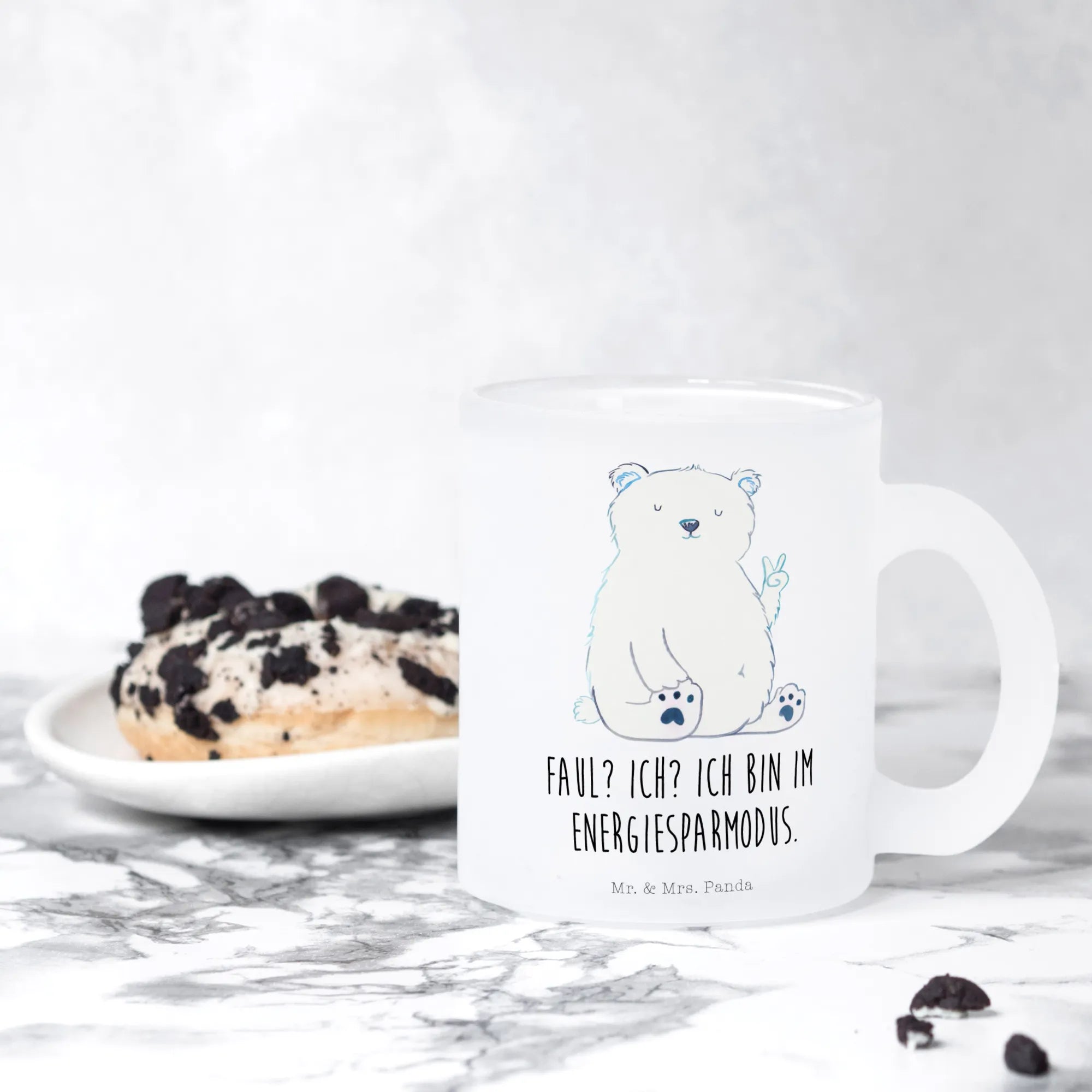 Diese zauberhafte Teetasse mit dem süßen Eisbären-Motiv 'Faul? Ich? Ich bin im Energiesparmodus.' von Mr. & Mrs. Panda ist das perfekte Geschenk für alle, die das Leben gemächlich angehen wollen. Wenn du nach einer einzigartigen Teetasse suchst, die dich beim Entspannen unterstützt, dann ist diese Tasse genau das Richtige für dich.