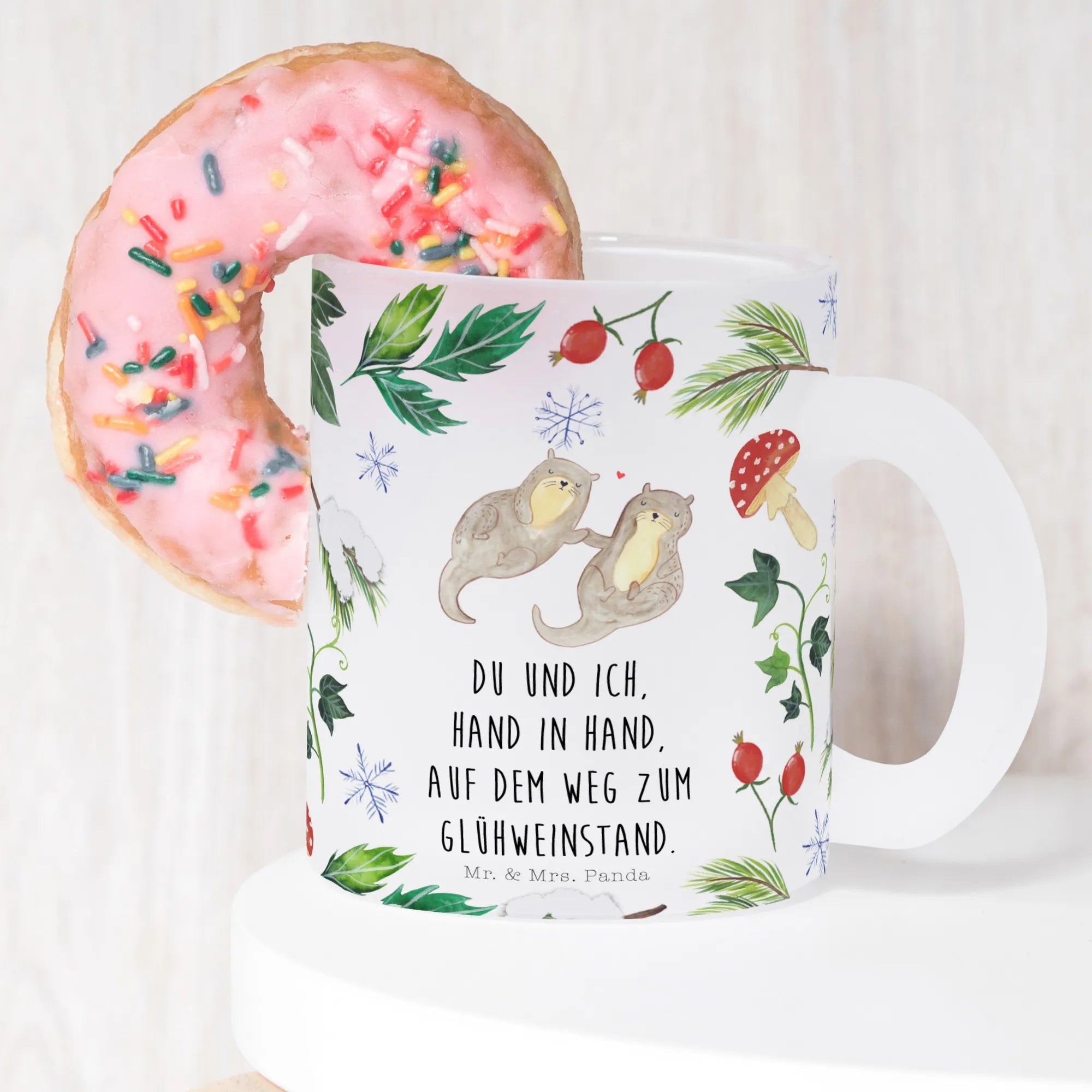 Ein kleines Winterwunder von Mr. & Mrs. Panda: Handgezeichnete Motive, liebevoll gestaltet – die Otter Glühweinstand Teetasse bringt Gemütlichkeit, Wärme und ein Lächeln in deinen Alltag. Hol dir die Weihnachtsstimmung nach Hause!