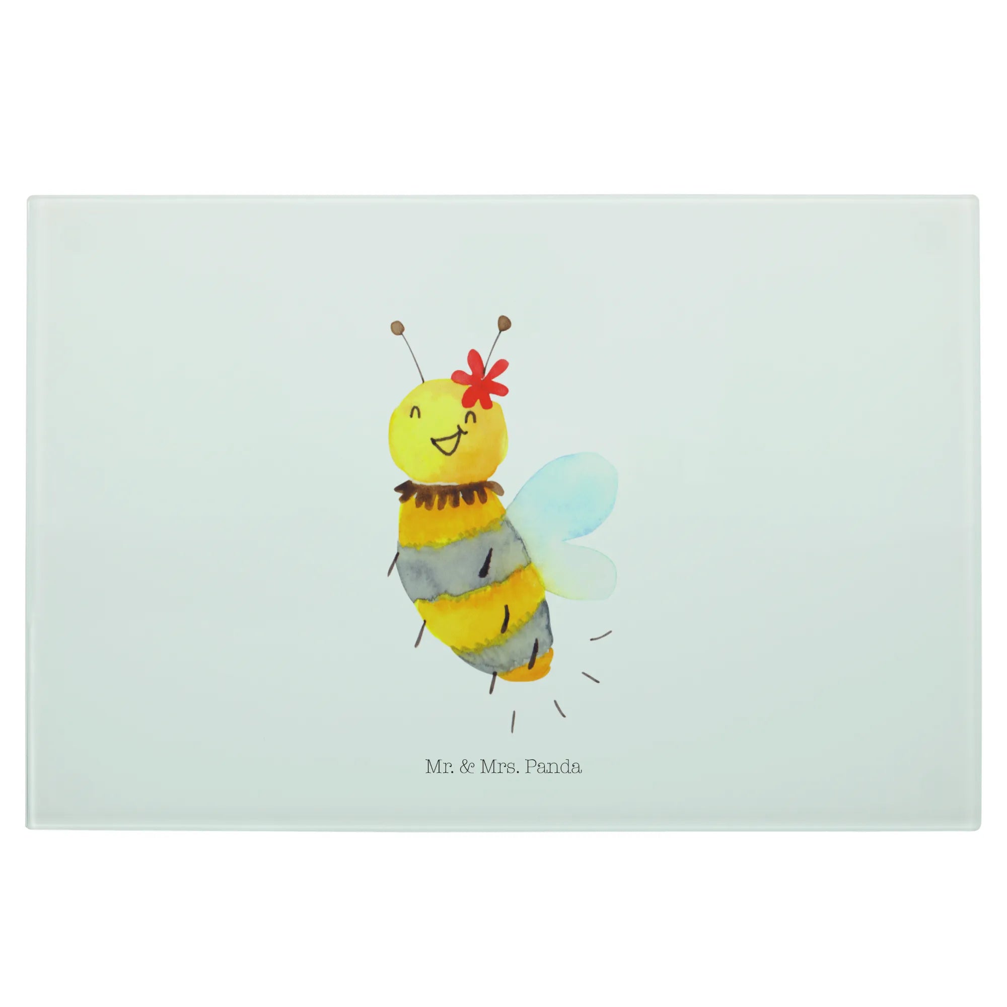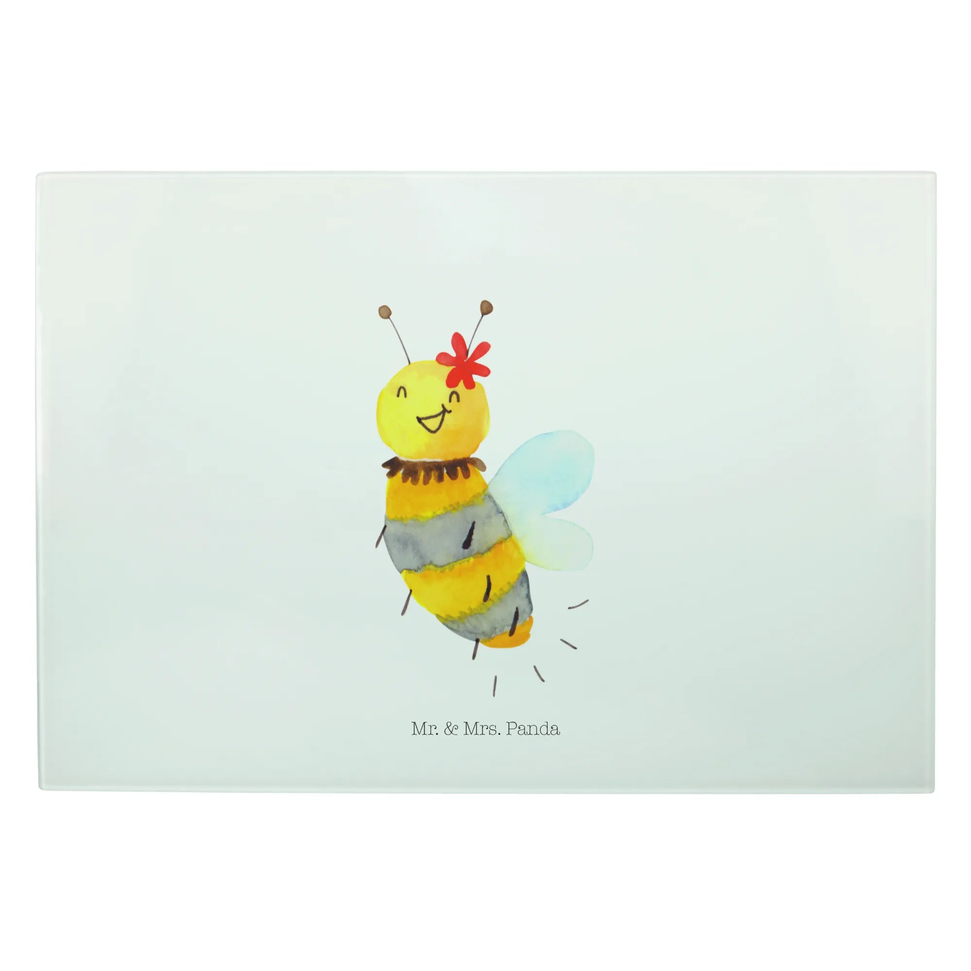 Entdecke das wunderschöne Medium Glas Schneidbrett "Biene Blume" aus der zauberhaften Bienen-Kollektion von Mr. & Mrs. Panda! Dieses handgezeichnete, kratzfeste Glasbrett ist nicht nur praktisch, sondern bringt auch einen fröhlichen Hauch Natur in deine Küche.