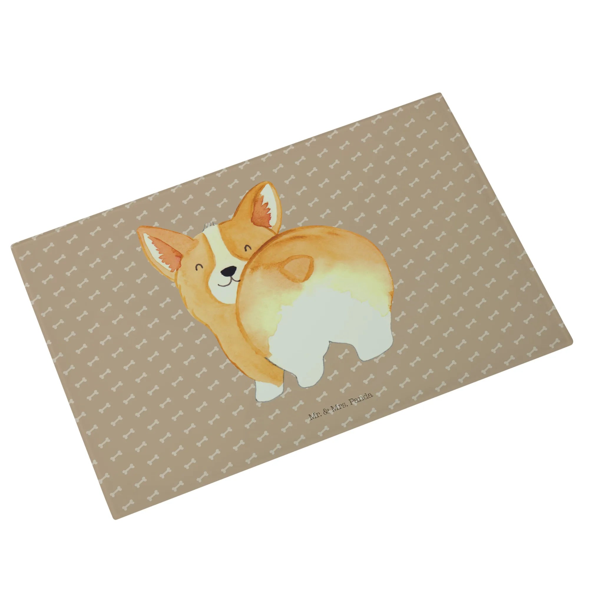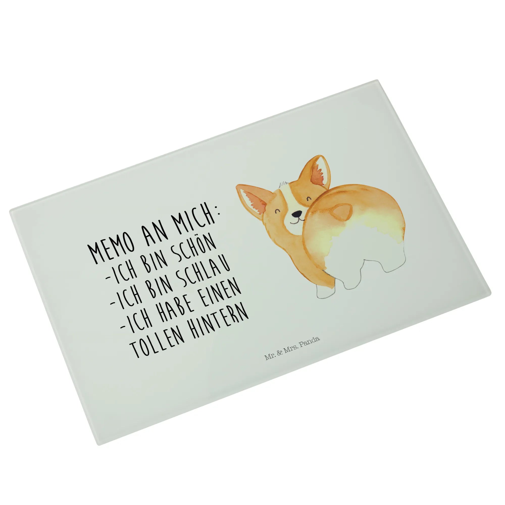 Glasschneidebrett Corgi Po - Medium Glas Schneidbrett - mit Spruch - Weiß