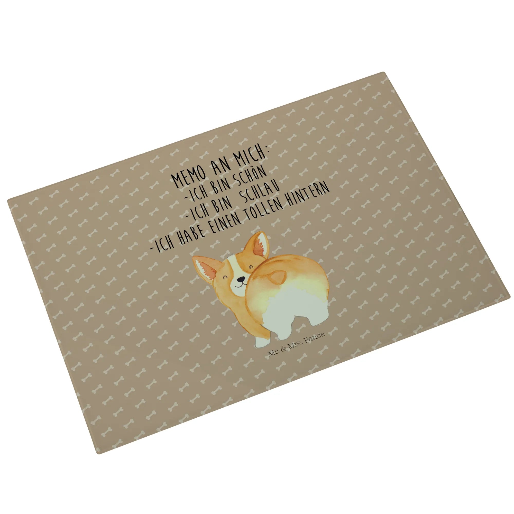 Die hochwertige, kratzfeste Glasoberfläche sorgt dafür, dass Dein Schneidbrett stets in bestem Zustand bleibt und damit für die nächsten Projekte bereit ist. Der witzige Corgie Po und der motivierende Spruch "Memo an mich: ich bin schön, ich bin schlau, ich habe einen tollen Hintern" bringen nicht nur Farbe in Deine Küche, sondern motivieren auch beim Kochen.