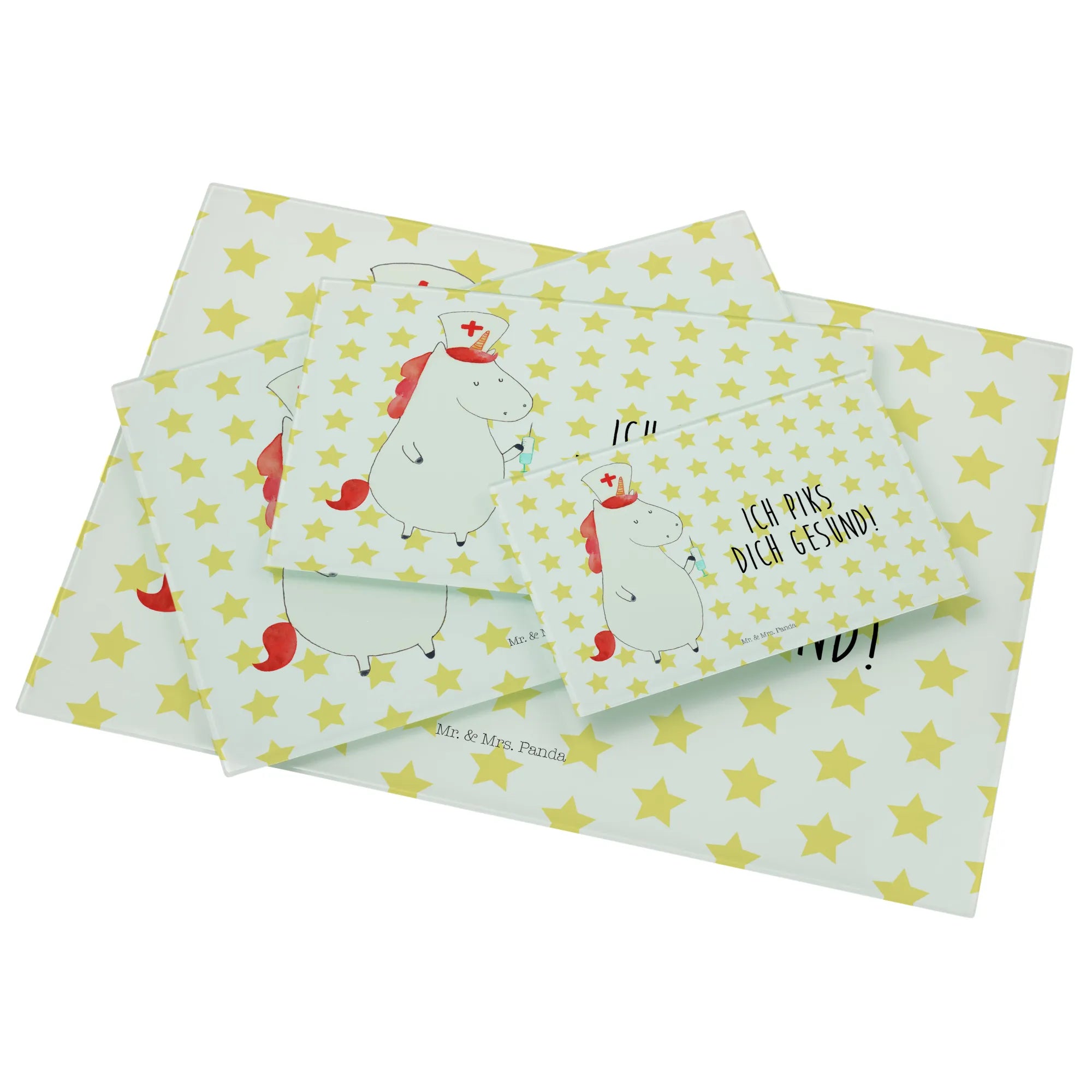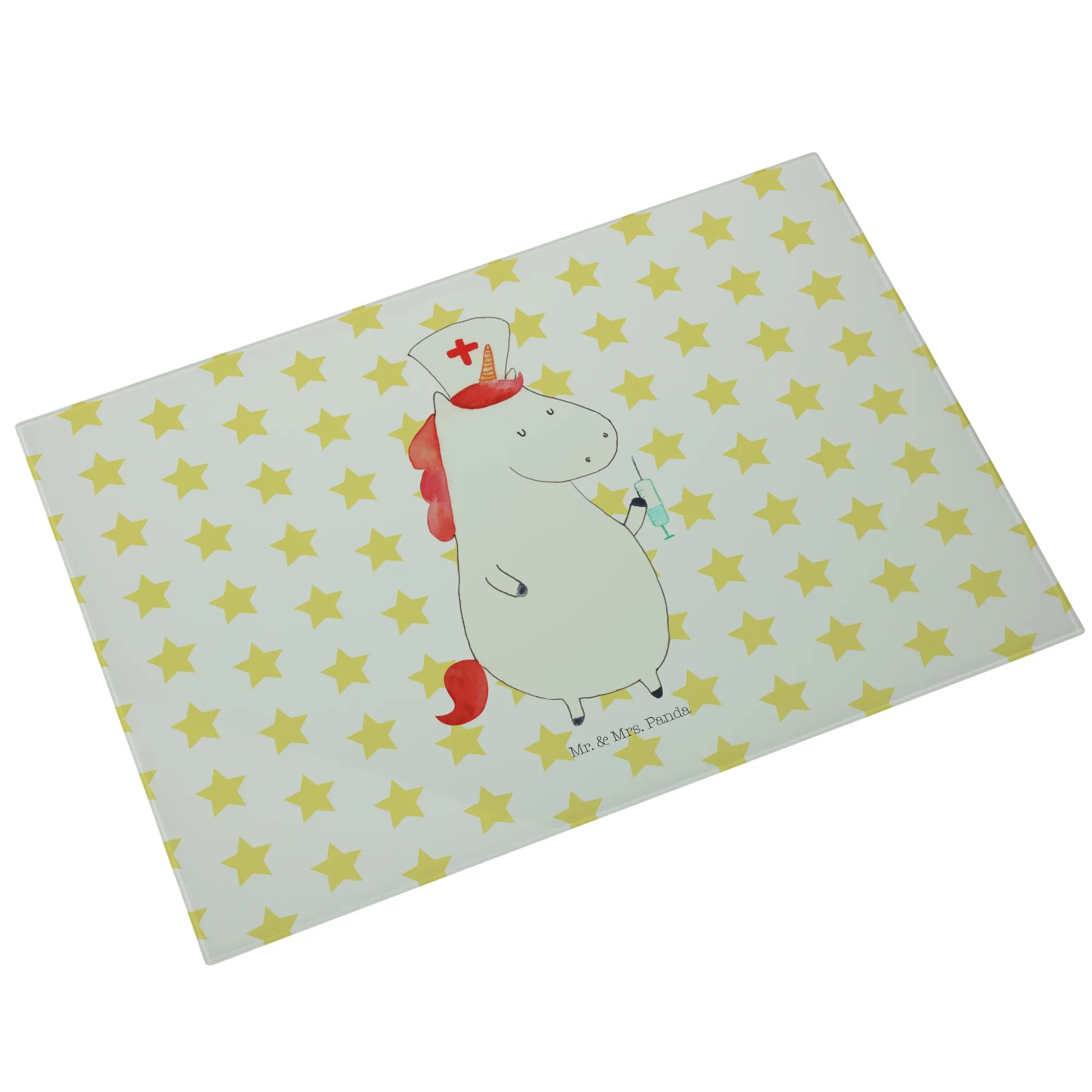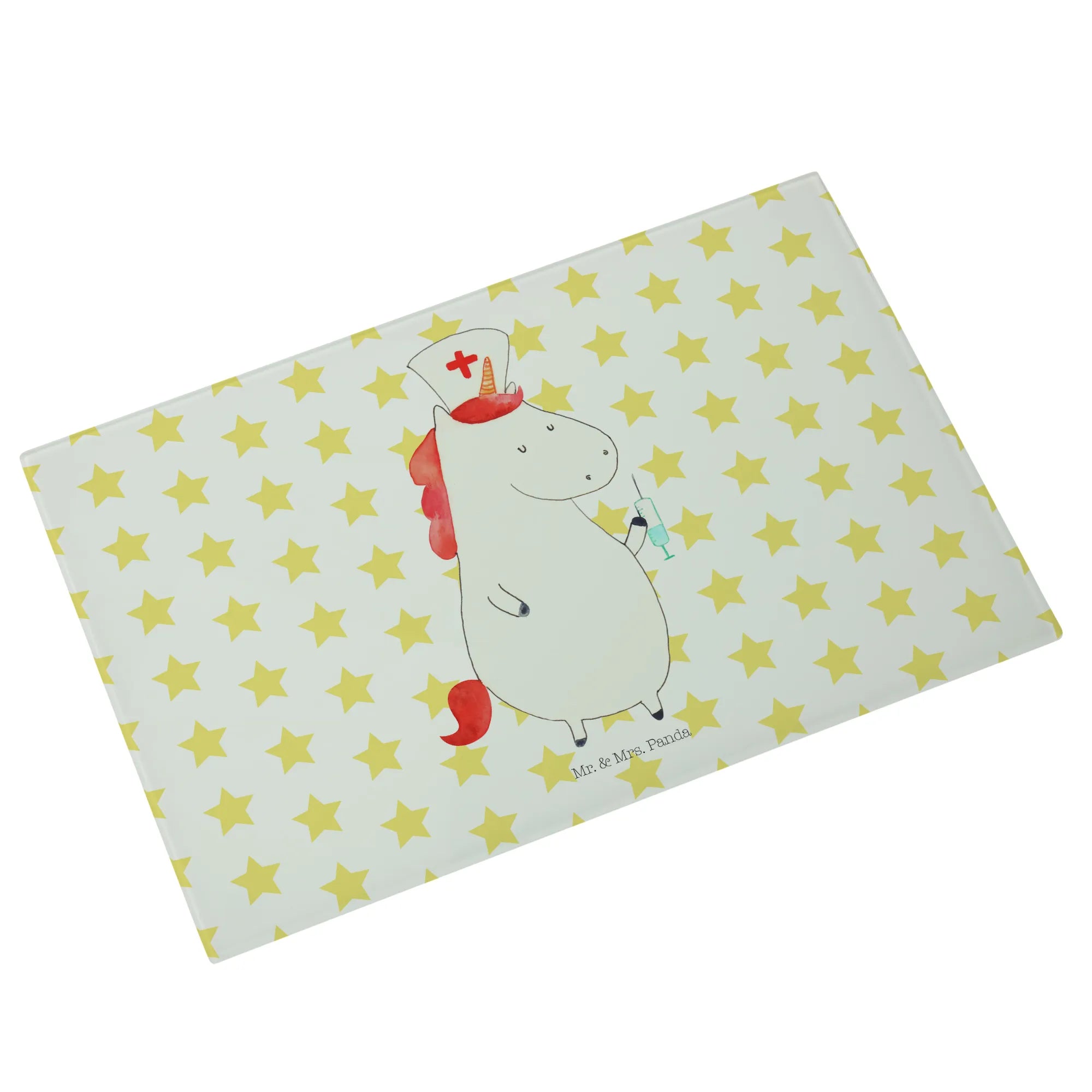 Das Medium Glas Schneidbrett mit dem zauberhaften Einhorn-Motiv "Krankenschwester" von Mr. & Mrs. Panda ist das perfekte Geschenk für alle, die im Gesundheitswesen arbeiten oder einfach nur ein Herz für die Pflege haben.