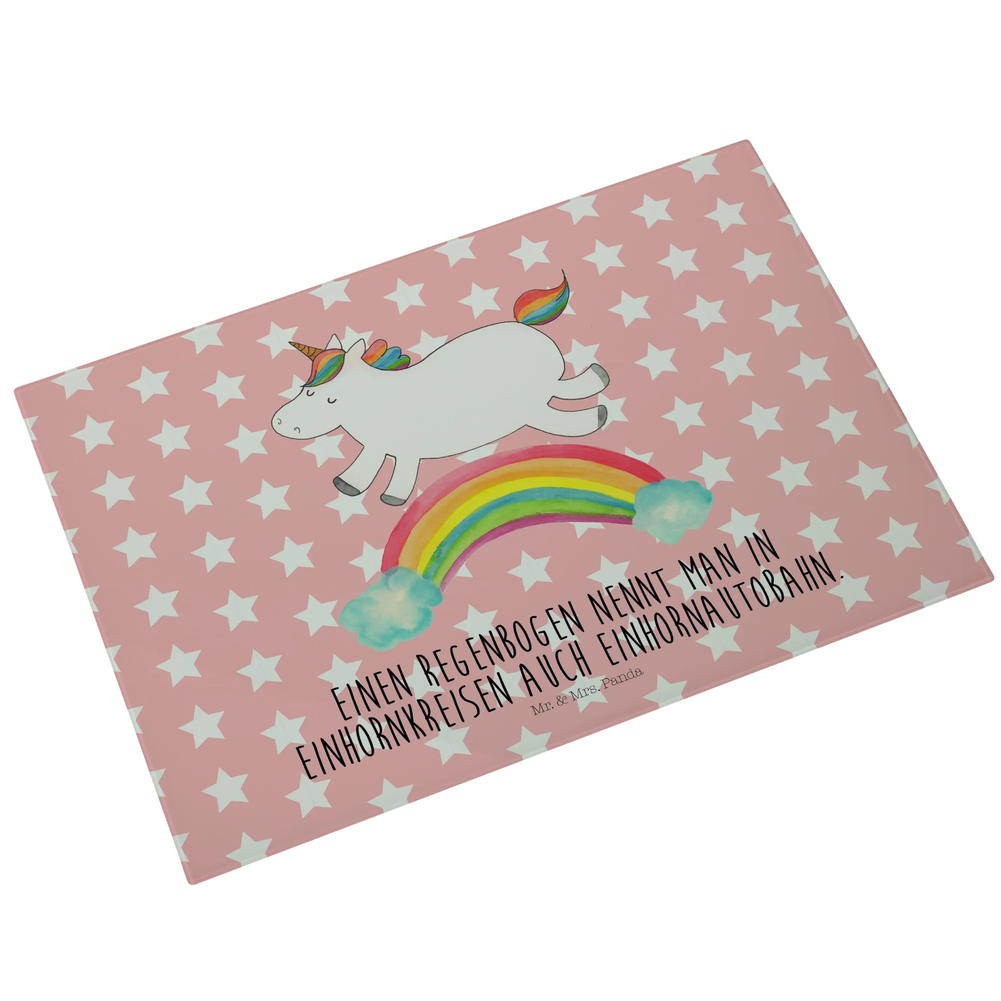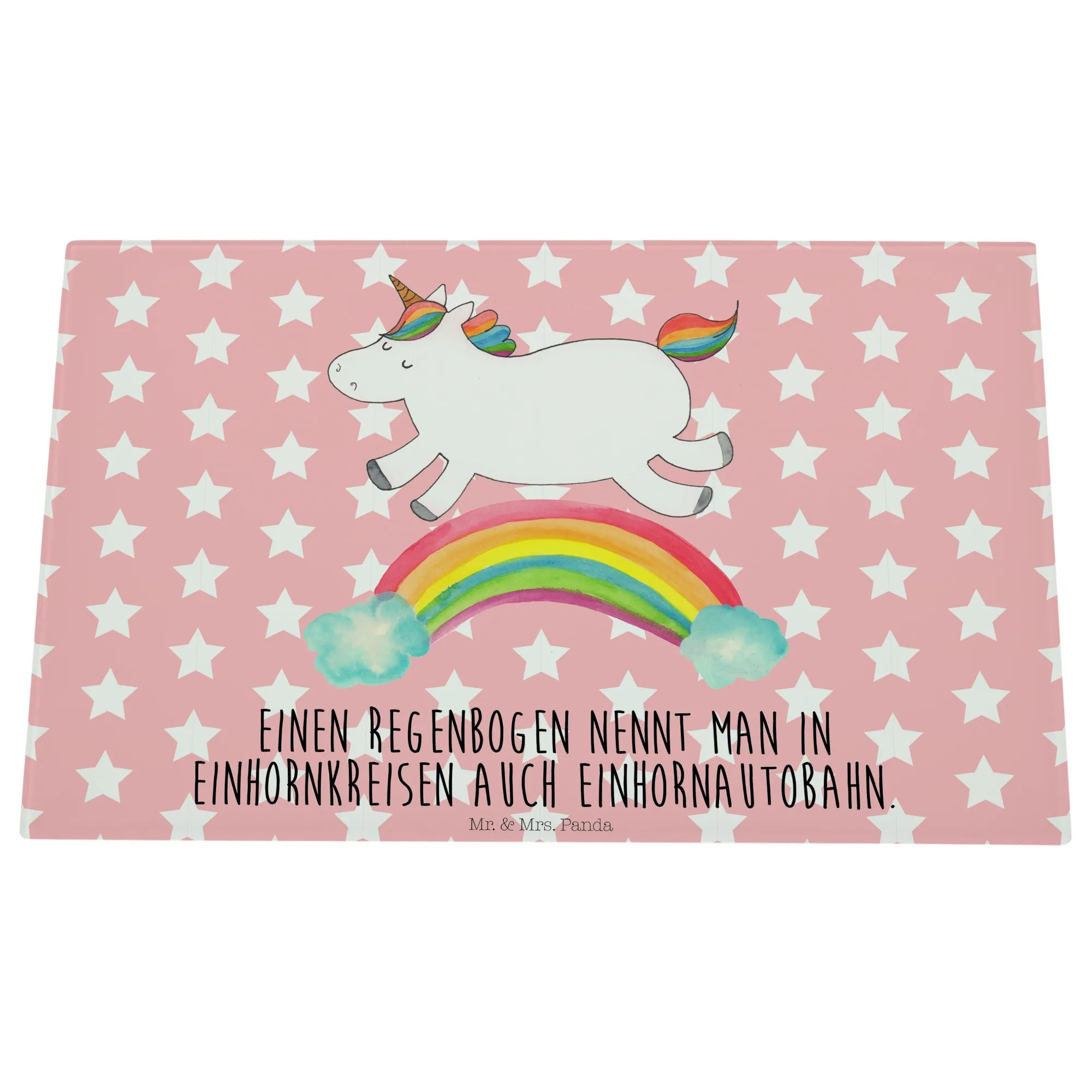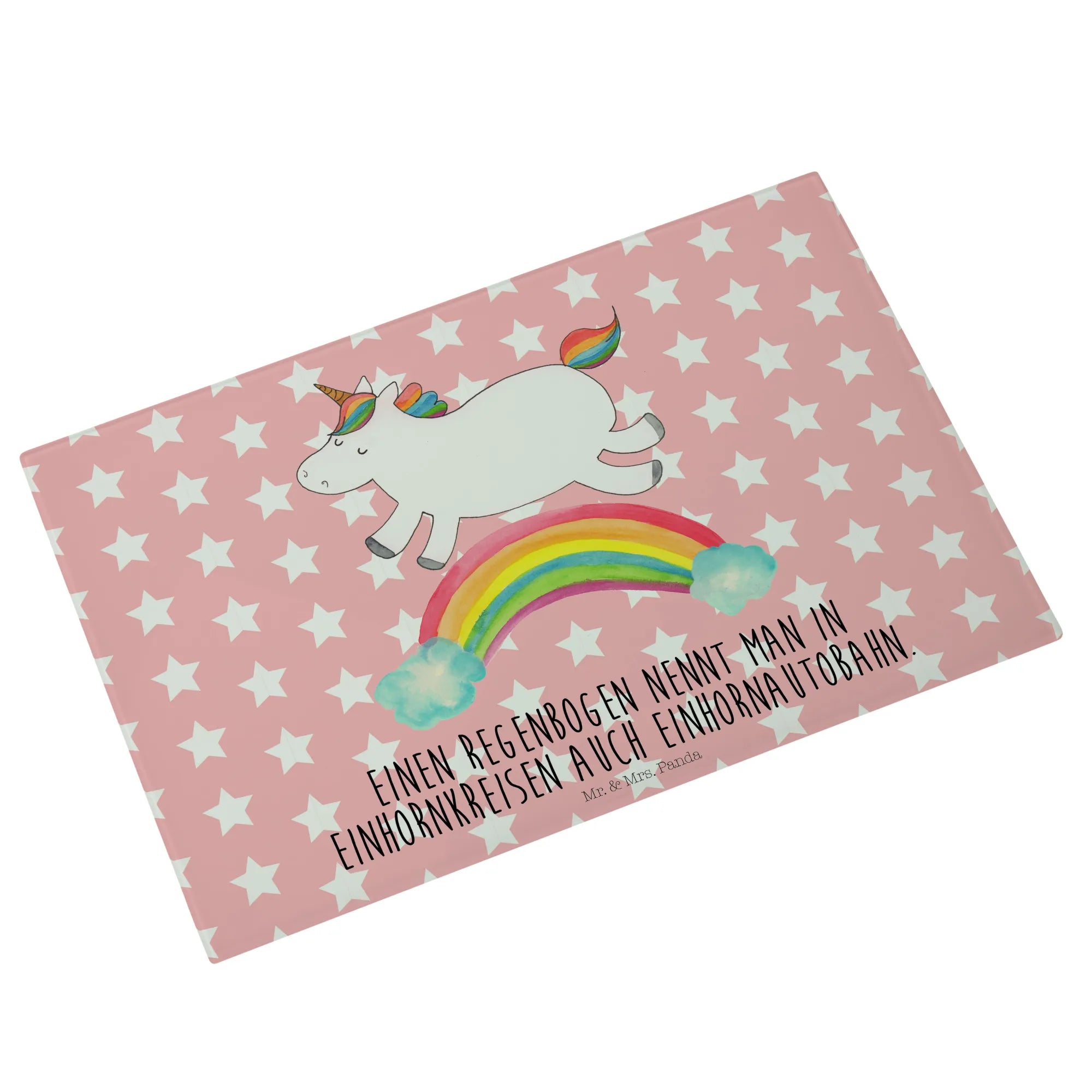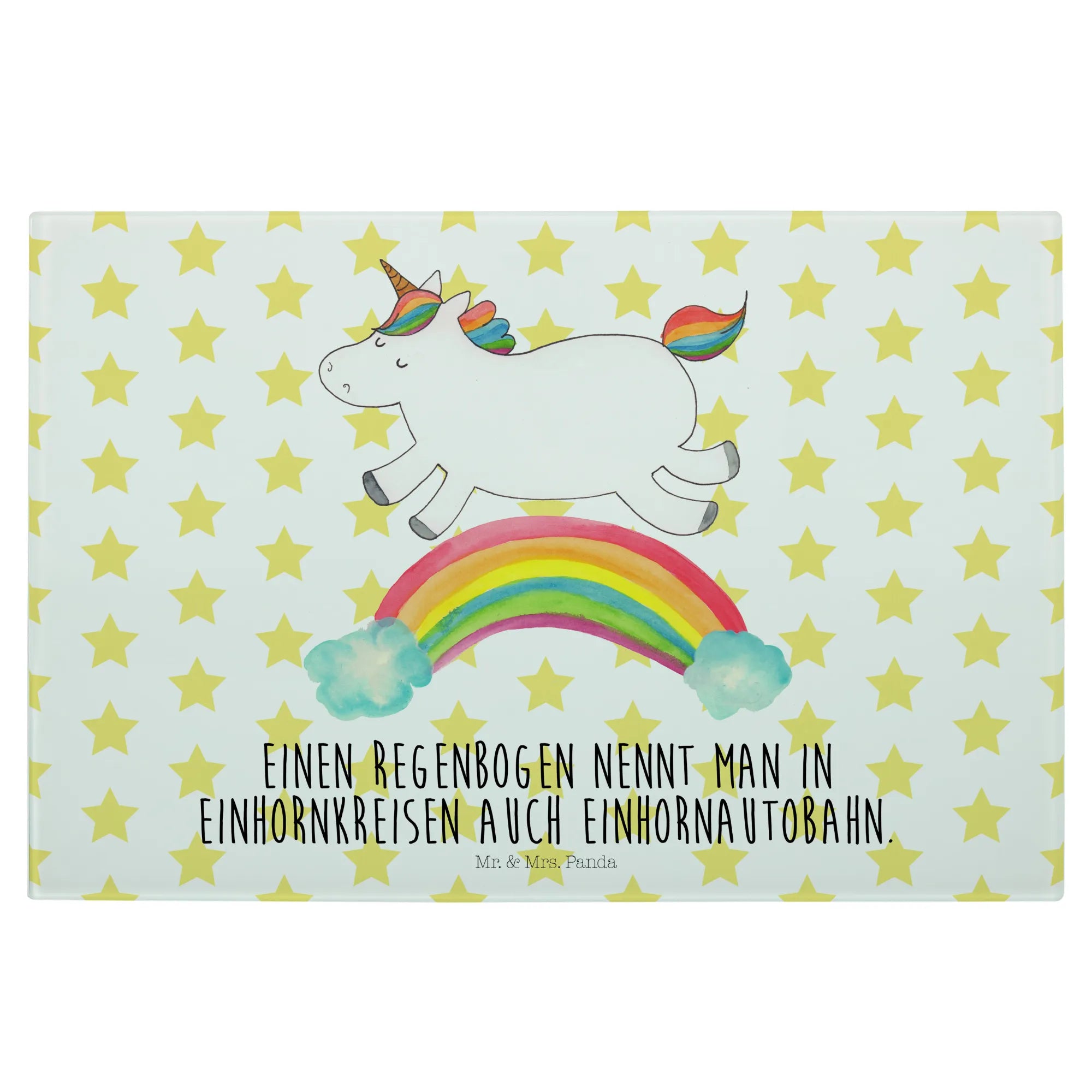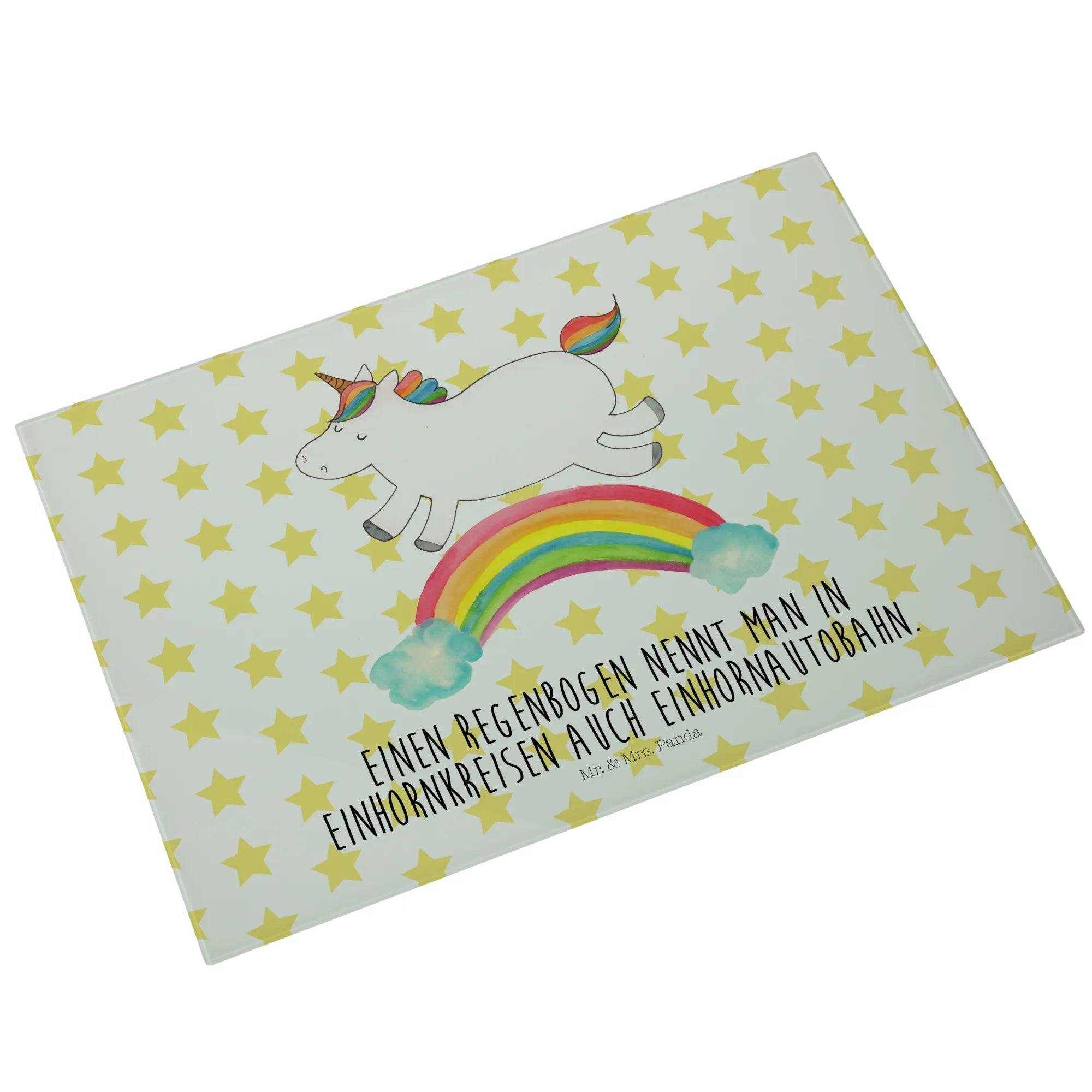 Das Einhorn Motiv ist besonders bei Erwachsenen beliebt, die sich gerne an die zauberhafte Kindheit erinnern, in der Einhörner die Helden ihrer Geschichten waren. Mit einem süßen Motto, dass jedes Herz erwärmt, ist das Medium Glas Schneidbrett von Mr. & Mrs. Panda das perfekte Geschenk für wissbegierige Freunde: "Einen Regenbogen nennt man in Einhornkreisen auch Einhornautobahn." Egal ob du es kaufst, um es zu verschenken oder es selbst nutzen möchtest, es wird definitiv für Freude und Staunen sorgen.